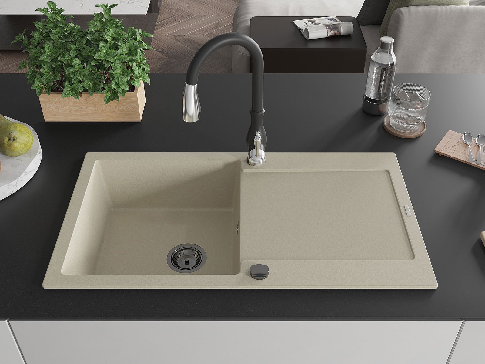 Dřez byl vyroben z vysoce kvalitního granitu. Představuje elegantní a především praktický doplněk každé kuchyně, bez ohledu na její styl. Vysoká kvalita a trvanlivost granitu zajišťují dlouholeté používání.