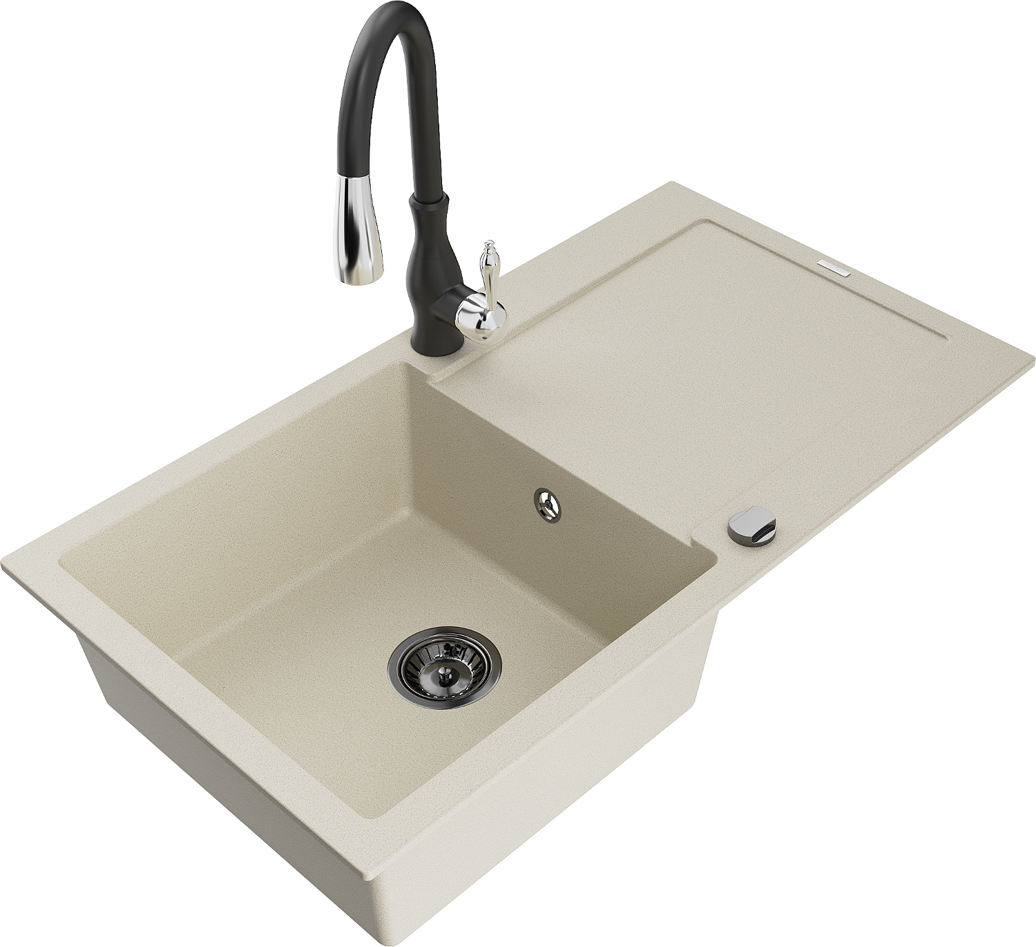 Povrch dřezu je odolný proti skvrnám a zabarvení, což usnadňuje jeho čištění a zachovává jeho barvu po dlouhou dobu používání. Estetický a praktický doplněk každé kuchyně.