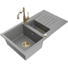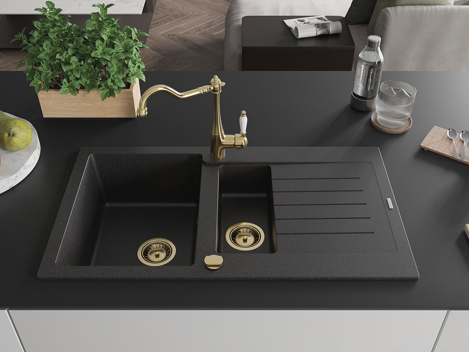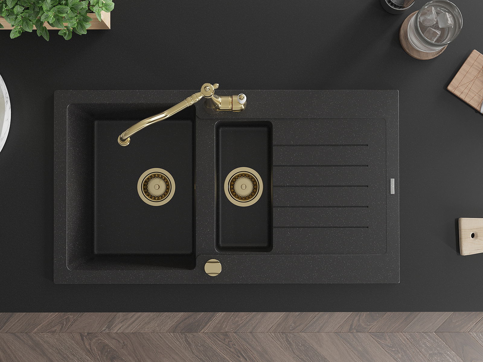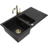 Mexen Matias granitový dřez 1,5komorový s odkapávačem a kuchyňskou baterií Carla černý/stříbrný metalik - 6502-73-670700-50