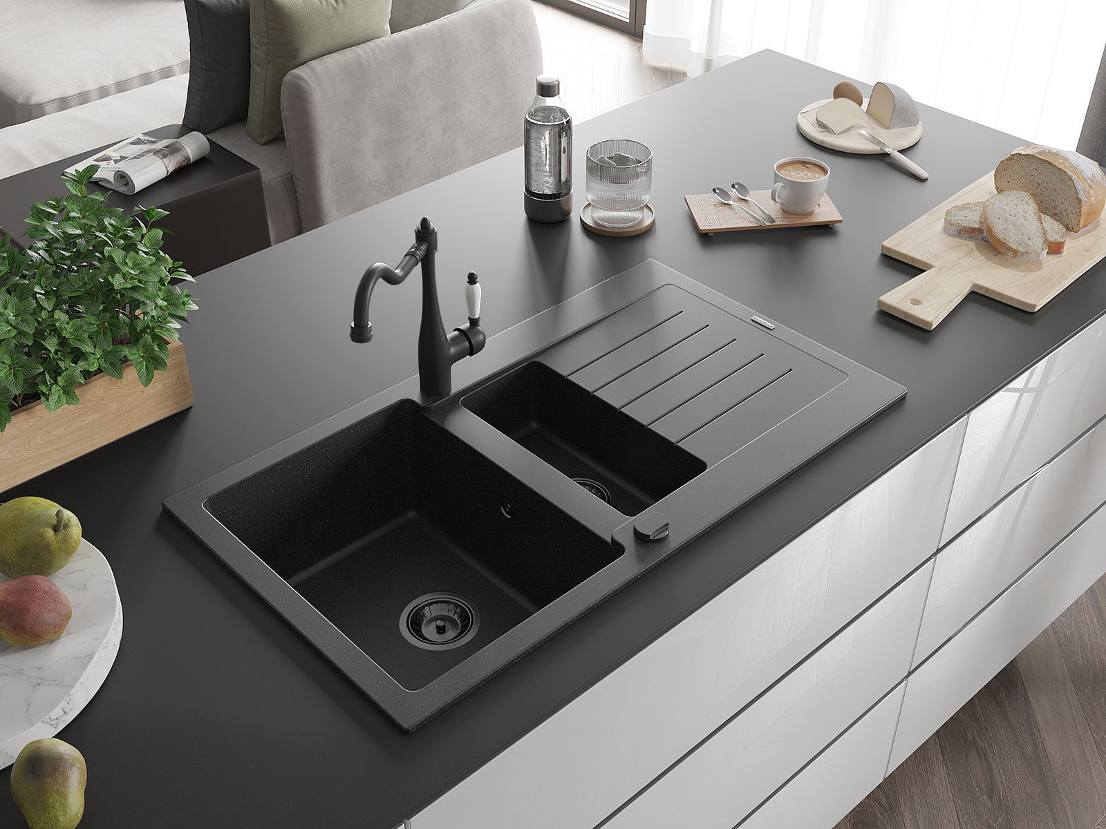 Dřez byl vyroben z vysoce kvalitního granitu. Představuje elegantní a především praktický doplněk každé kuchyně, bez ohledu na její styl. Vysoká kvalita a trvanlivost granitu zajišťují dlouholeté používání.