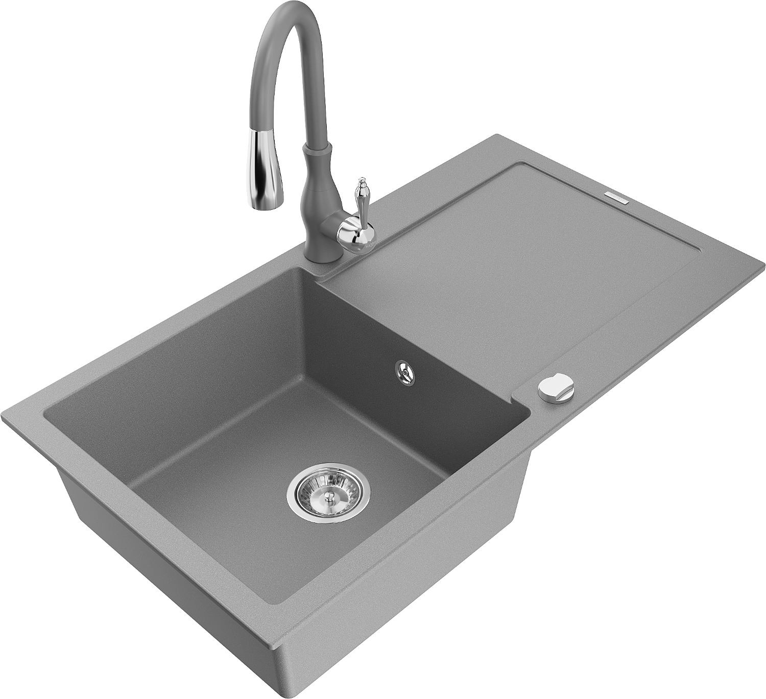 Mexen Leo žulový jednodřez s odkapávačem a kuchyňskou baterií Savita, šedý - 6501-71-672601-71