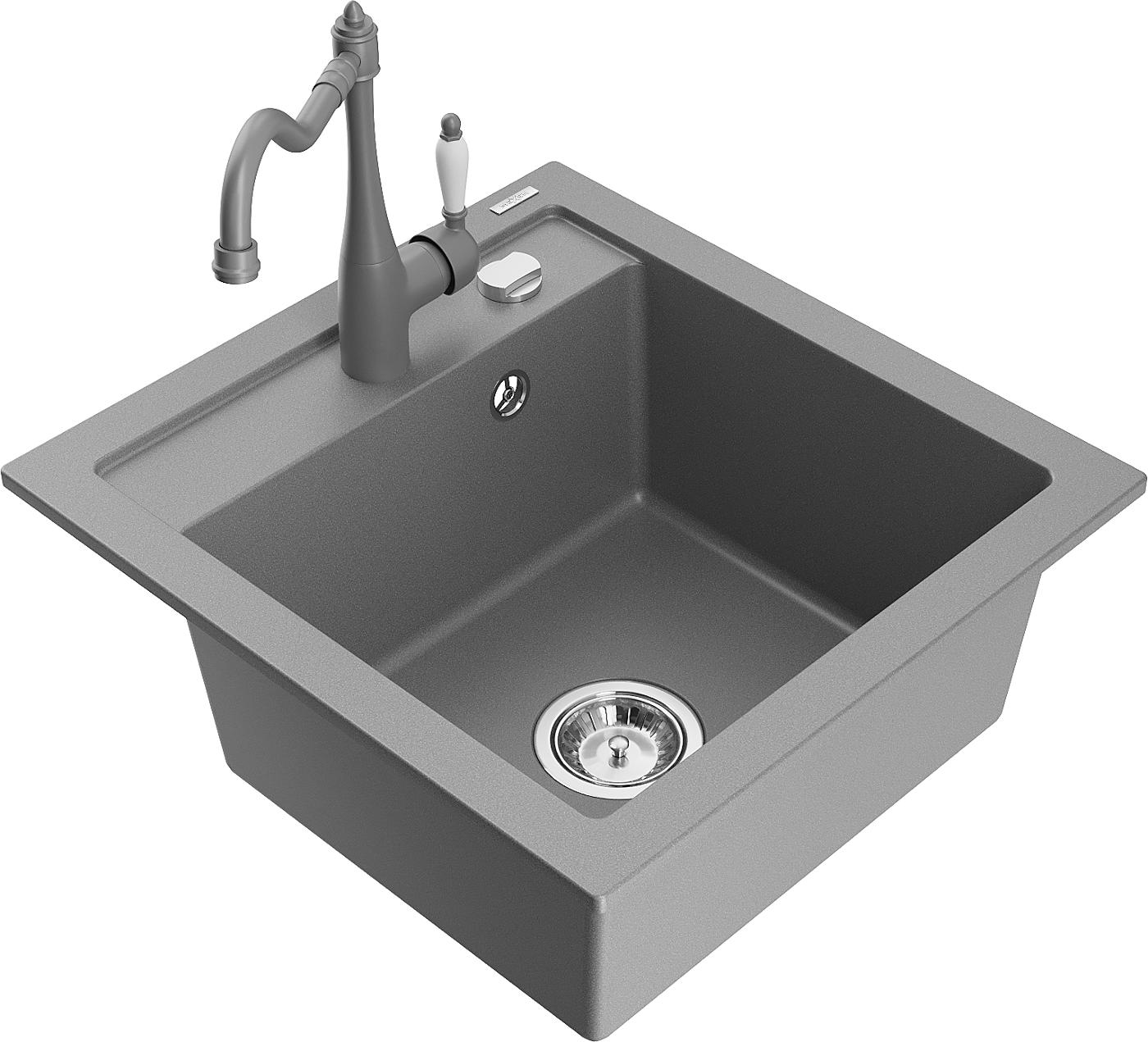 Mexen Vito granitový dřez s 1 komorou a kuchyňskou baterií Carla, šedý - 6503-71-670700-71