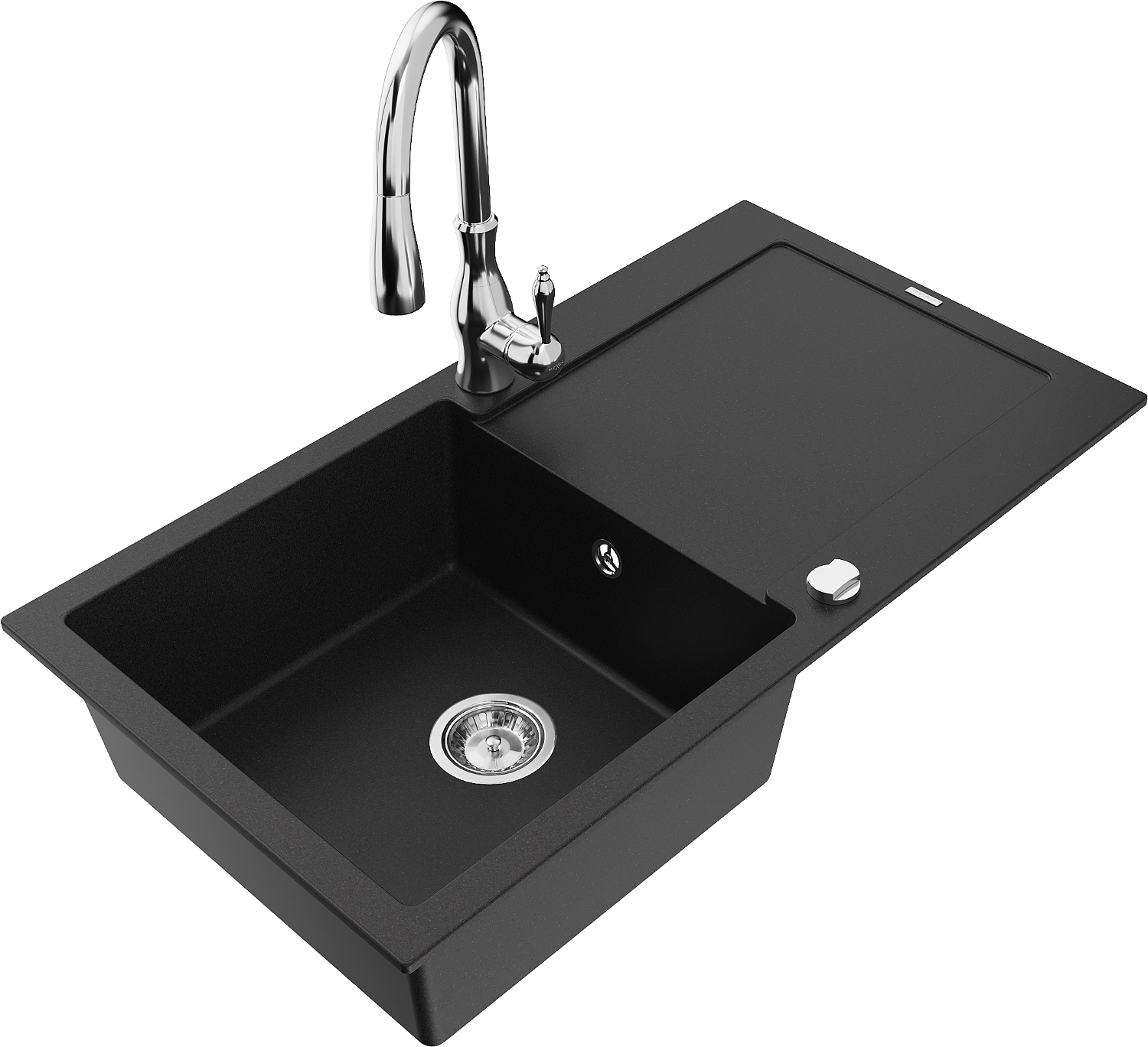 Mexen Leo granitový dřez 1-komorový s odkapávačem a kuchyňskou baterií Savita, černý - 6501-77-672601-00