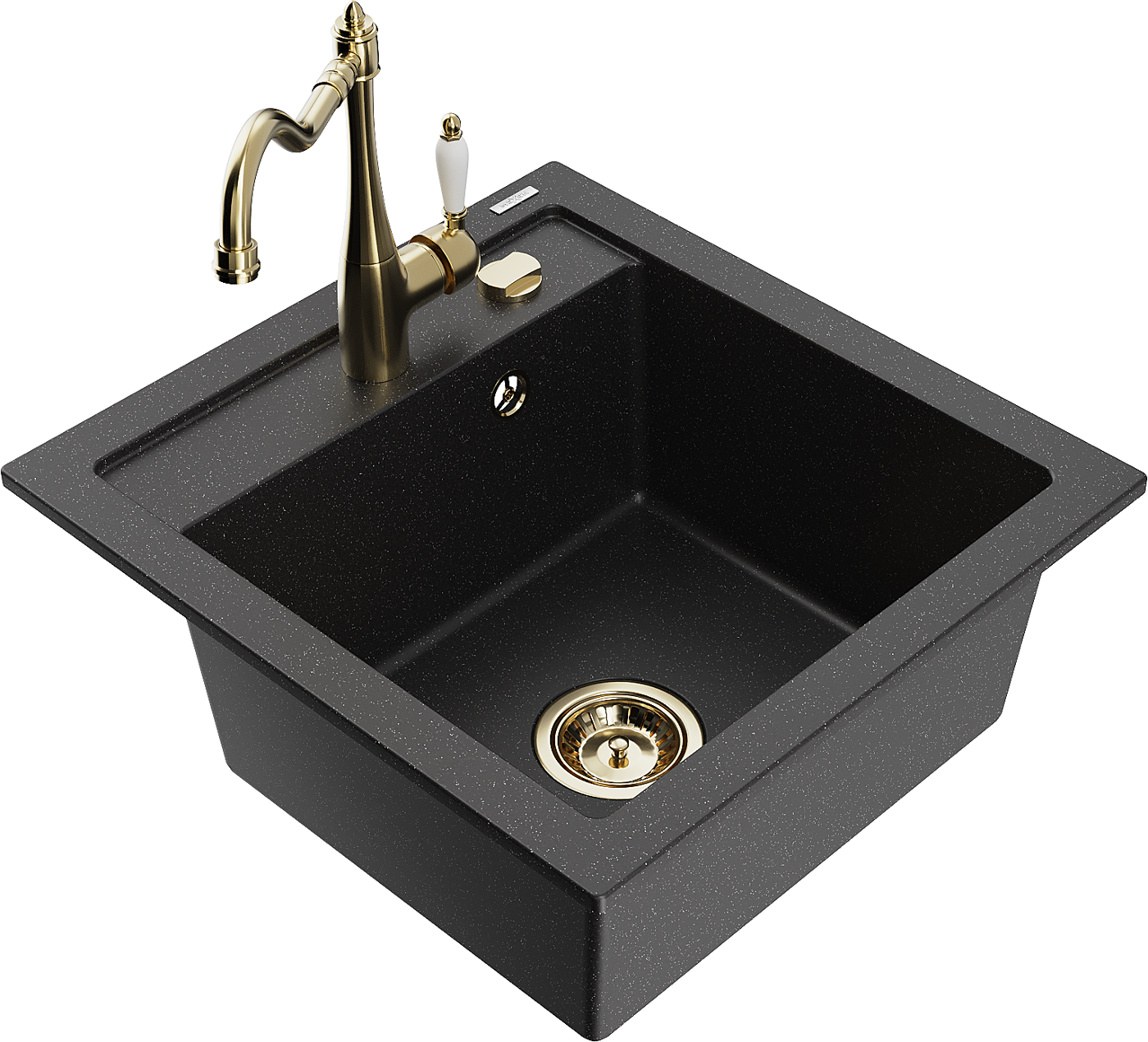 Mexen Vito granitový dřez 1komorový s kuchyňskou baterií Carla, černý/stříbrný metalík - 6503-73-670700-50
