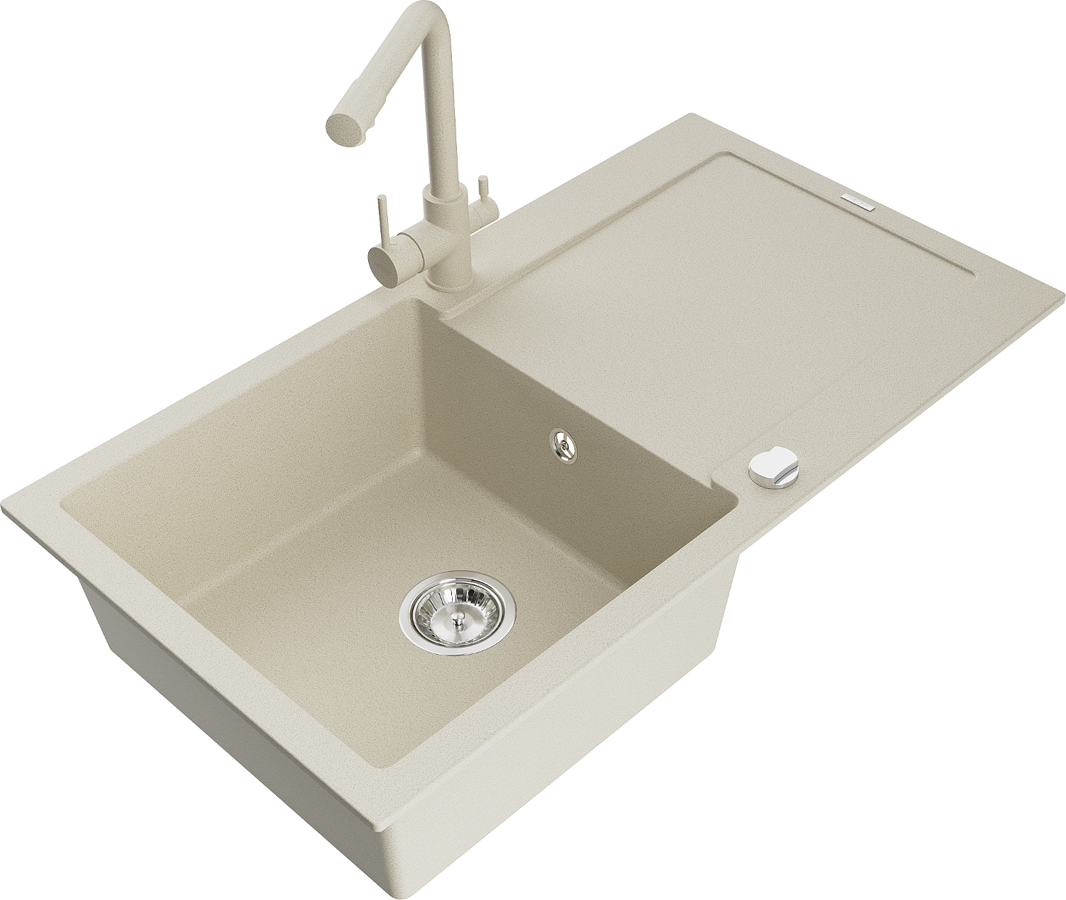 Mexen Leo jednovanový granitový dřez s odkapávačem a kuchyňskou baterií Duero, béžový - 6501-69-671600-69