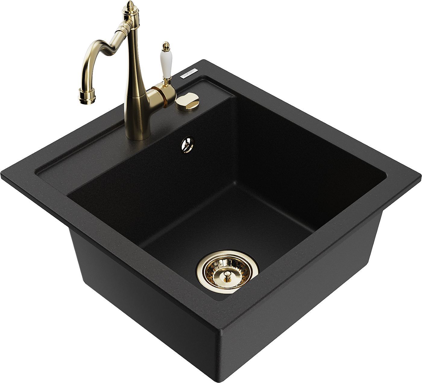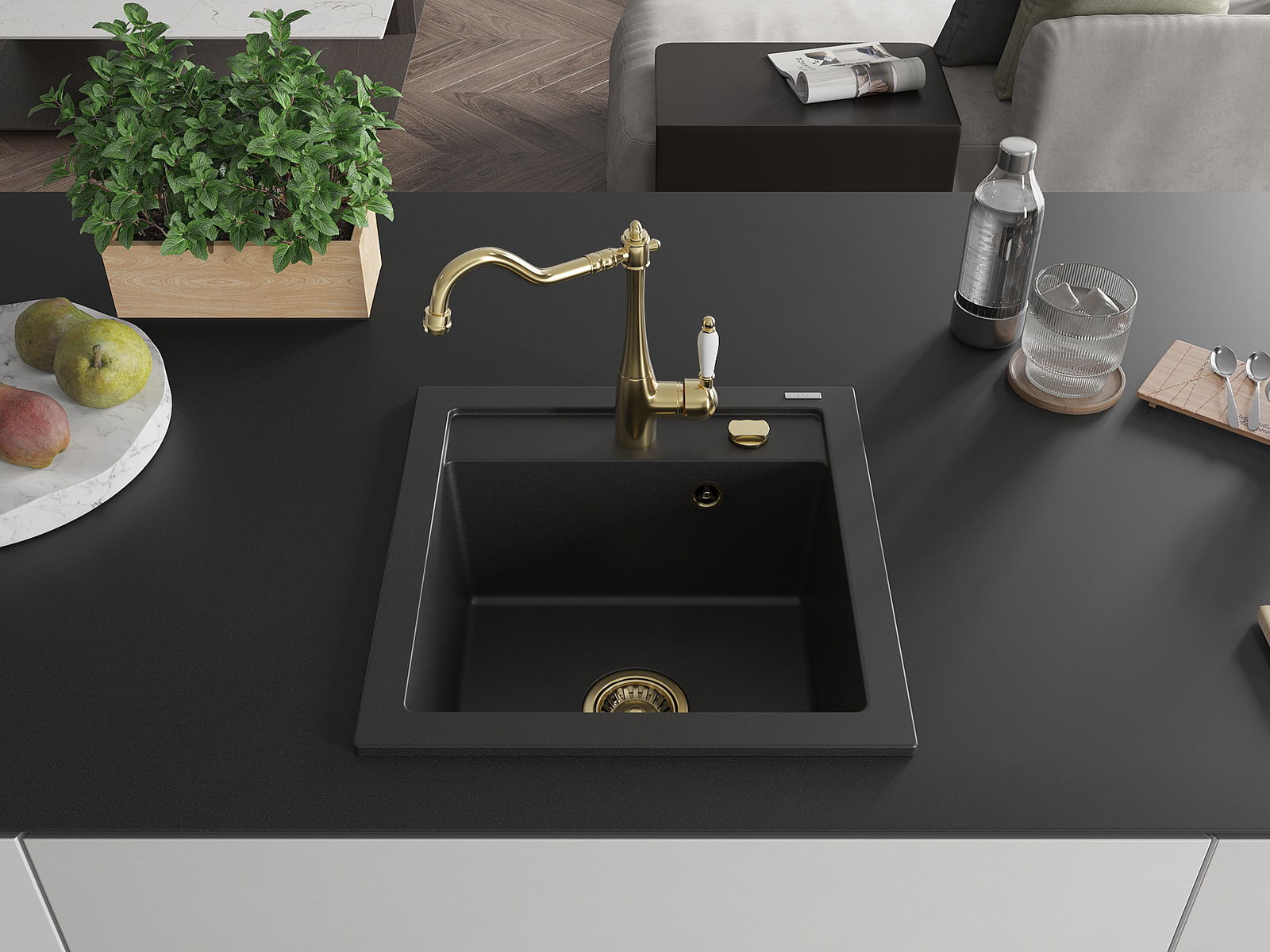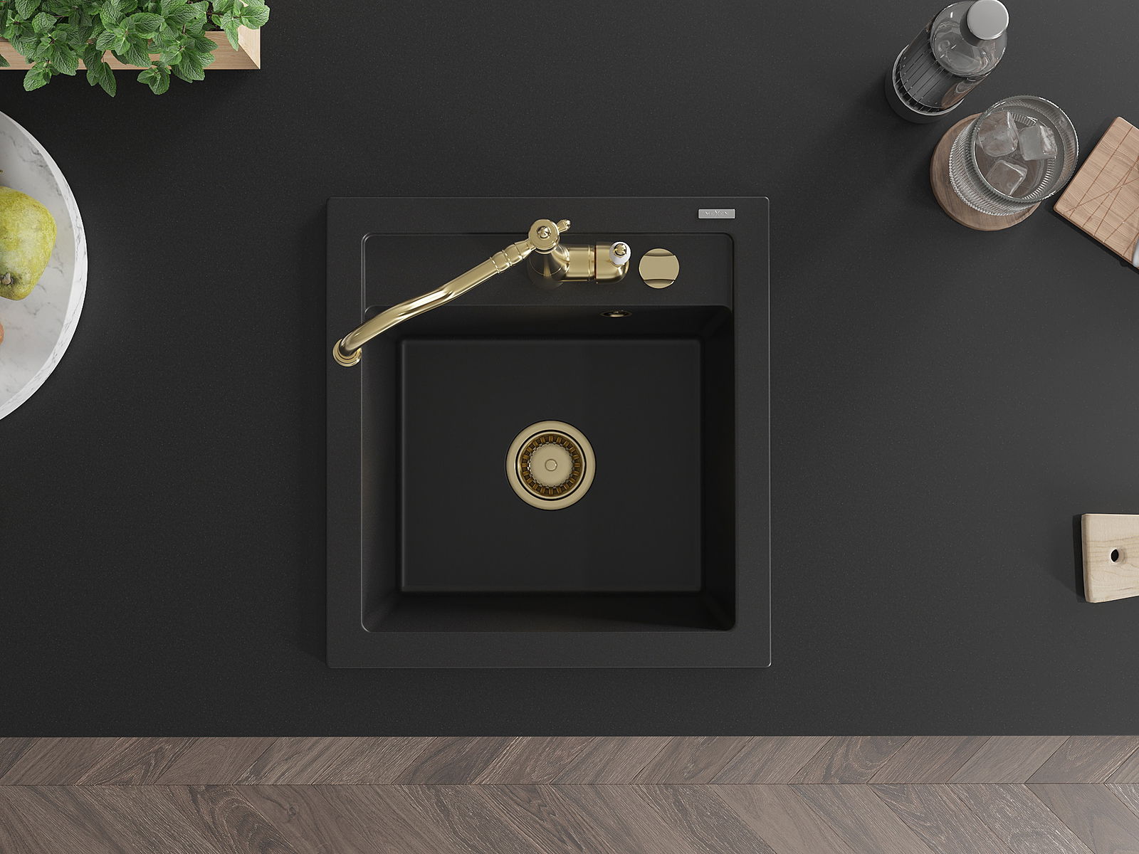 Mexen Vito granitový dřez 1-komorový s kuchyňskou baterií Carla, černý - 6503-77-670700-50