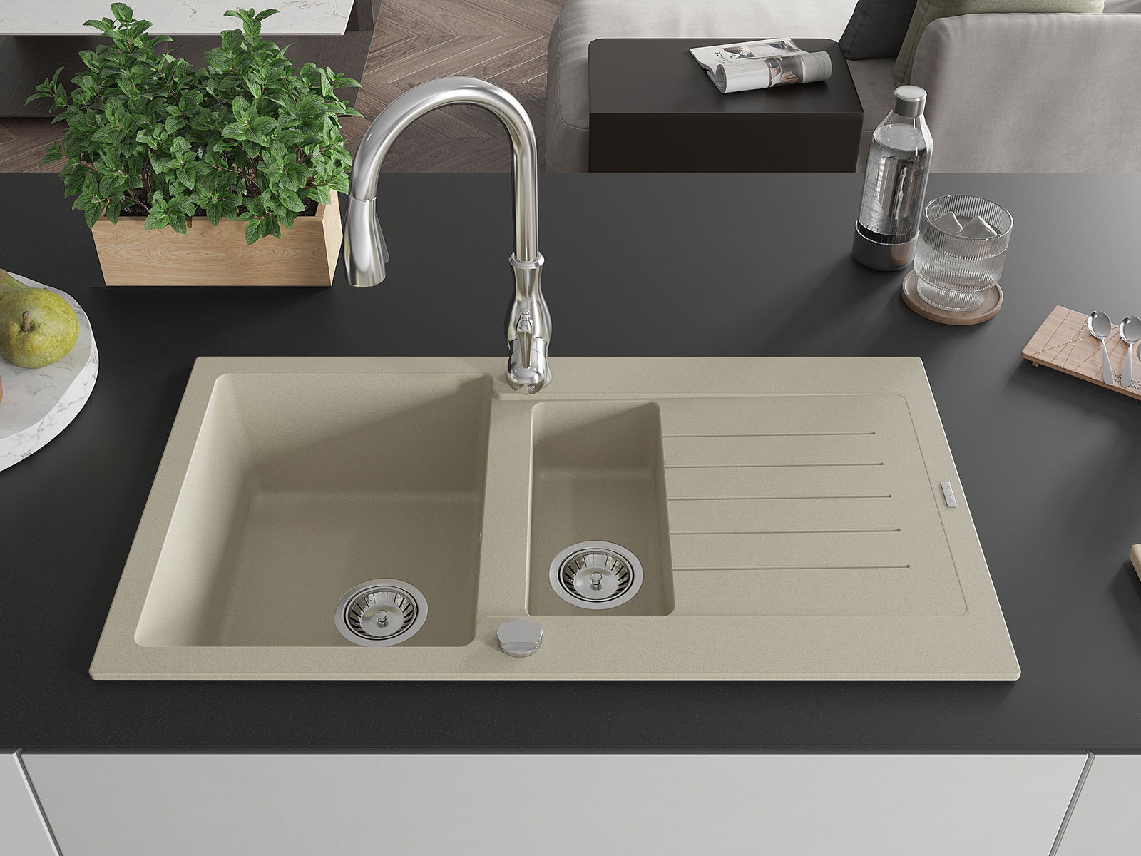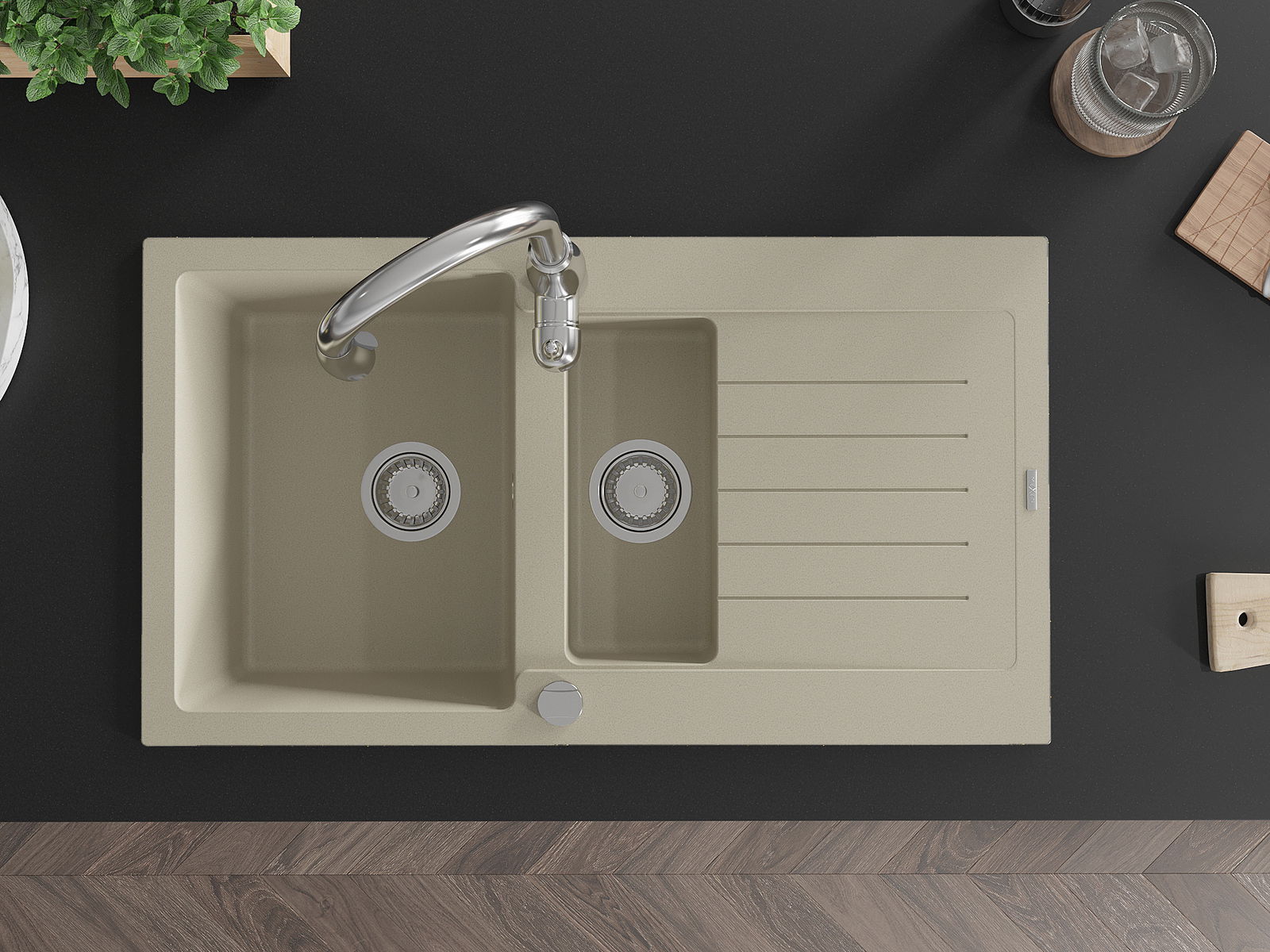 Dřez byl vyroben z vysoce kvalitního granitu. Představuje elegantní a především praktický doplněk každé kuchyně, bez ohledu na její styl. Vysoká kvalita a trvanlivost granitu zajišťují dlouholeté používání.
