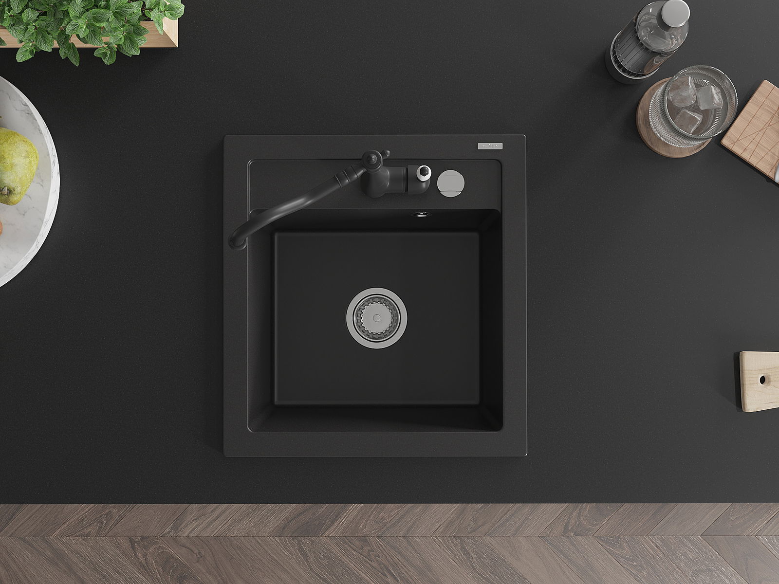 Mexen Vito granitový dřez s 1 komorou a kuchyňskou baterií Carla, černý - 6503-77-670700-70