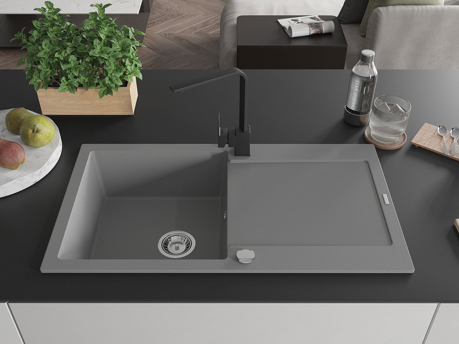 Dřez byl vyroben z vysoce kvalitního granitu. Představuje elegantní a především praktický doplněk každé kuchyně, bez ohledu na její styl. Vysoká kvalita a trvanlivost granitu zajišťují dlouholeté používání.