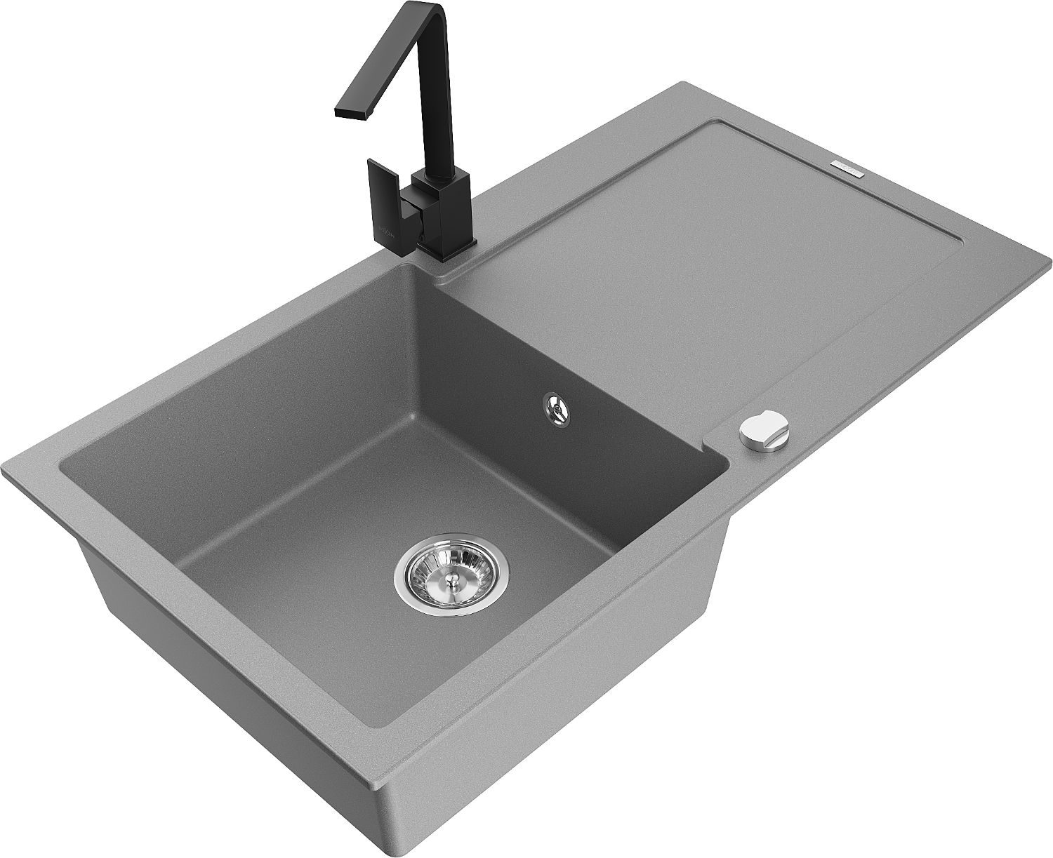 Mexen Leo granitový dřez jednokomorový s odkapávačem a kuchyňskou baterií Rita, šedý - 6501-71-670300-70