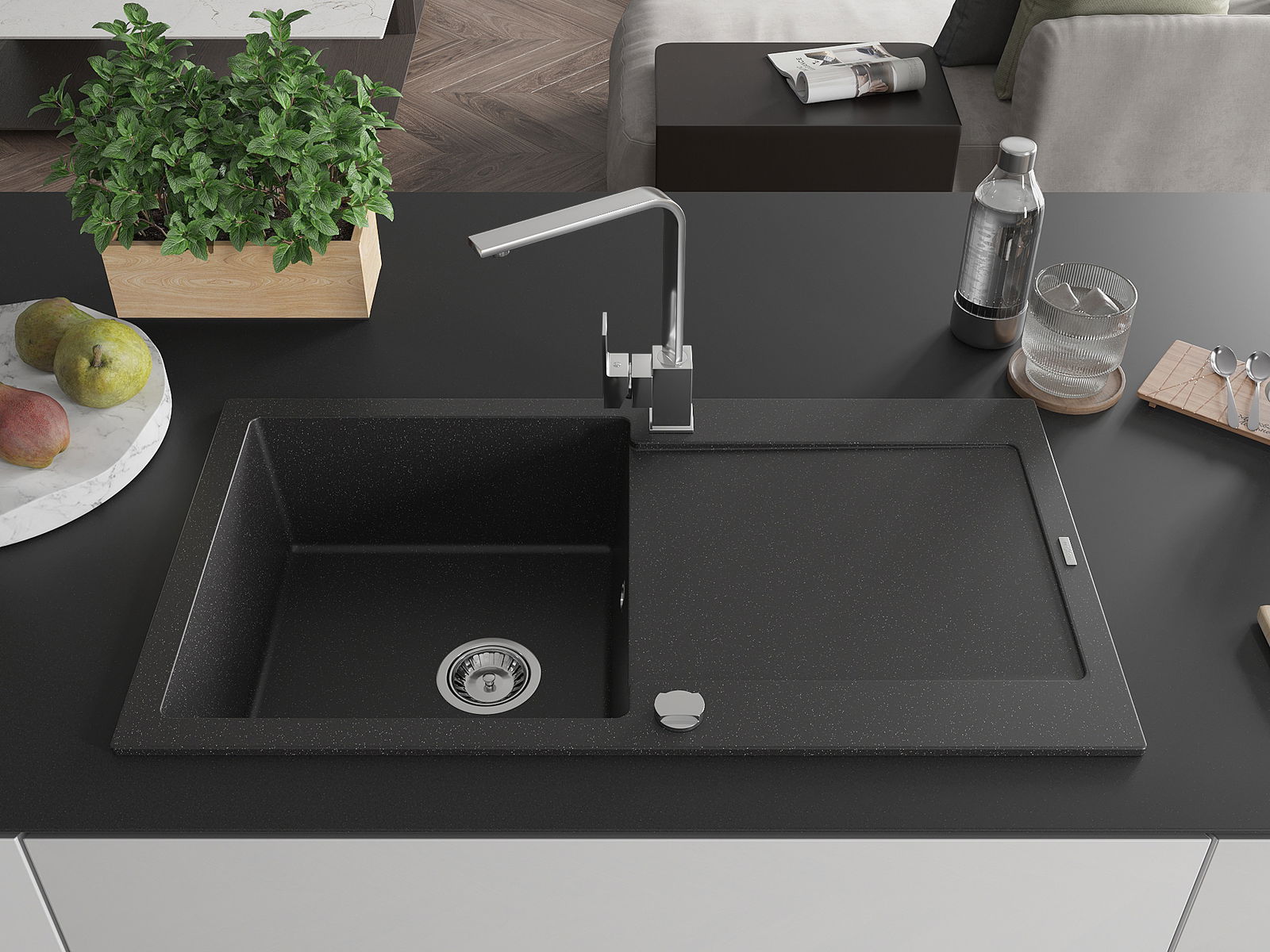 Dřez byl vyroben z vysoce kvalitního granitu. Představuje elegantní a především praktický doplněk každé kuchyně, bez ohledu na její styl. Vysoká kvalita a trvanlivost granitu zajišťují dlouholeté používání.