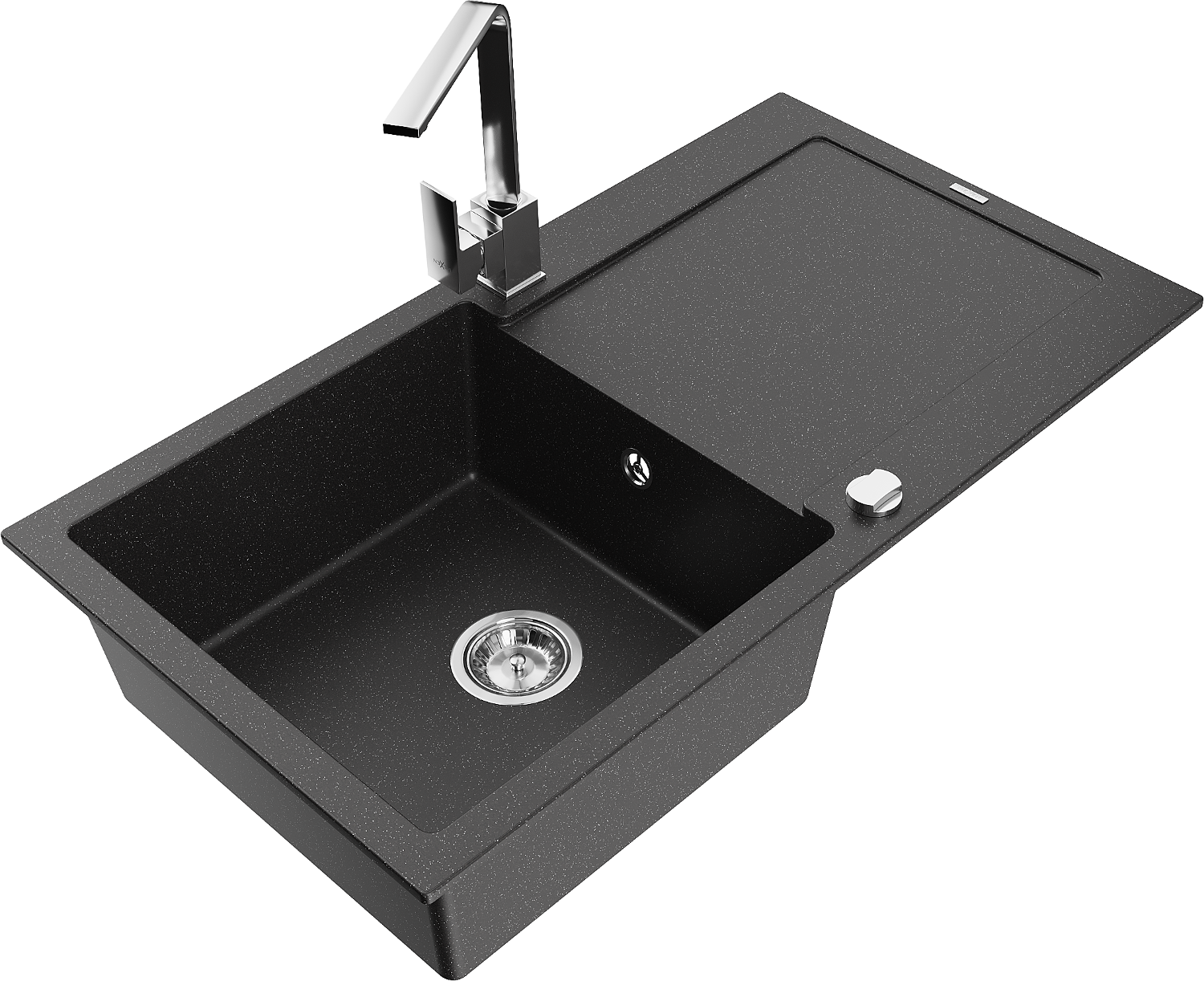 Mexen Leo granitový dřez 1-komorový s odkapávačem a kuchyňskou baterií Rita, černý/stříbrný metalický - 6501-73-670300-00