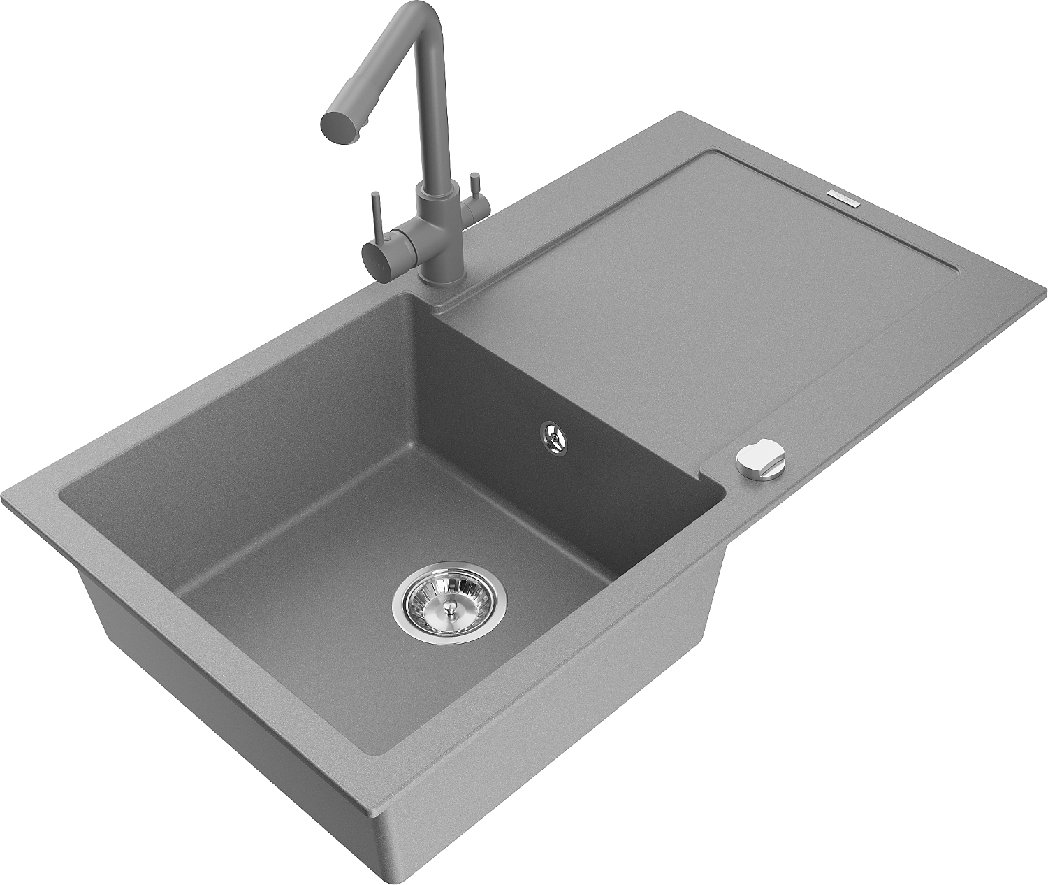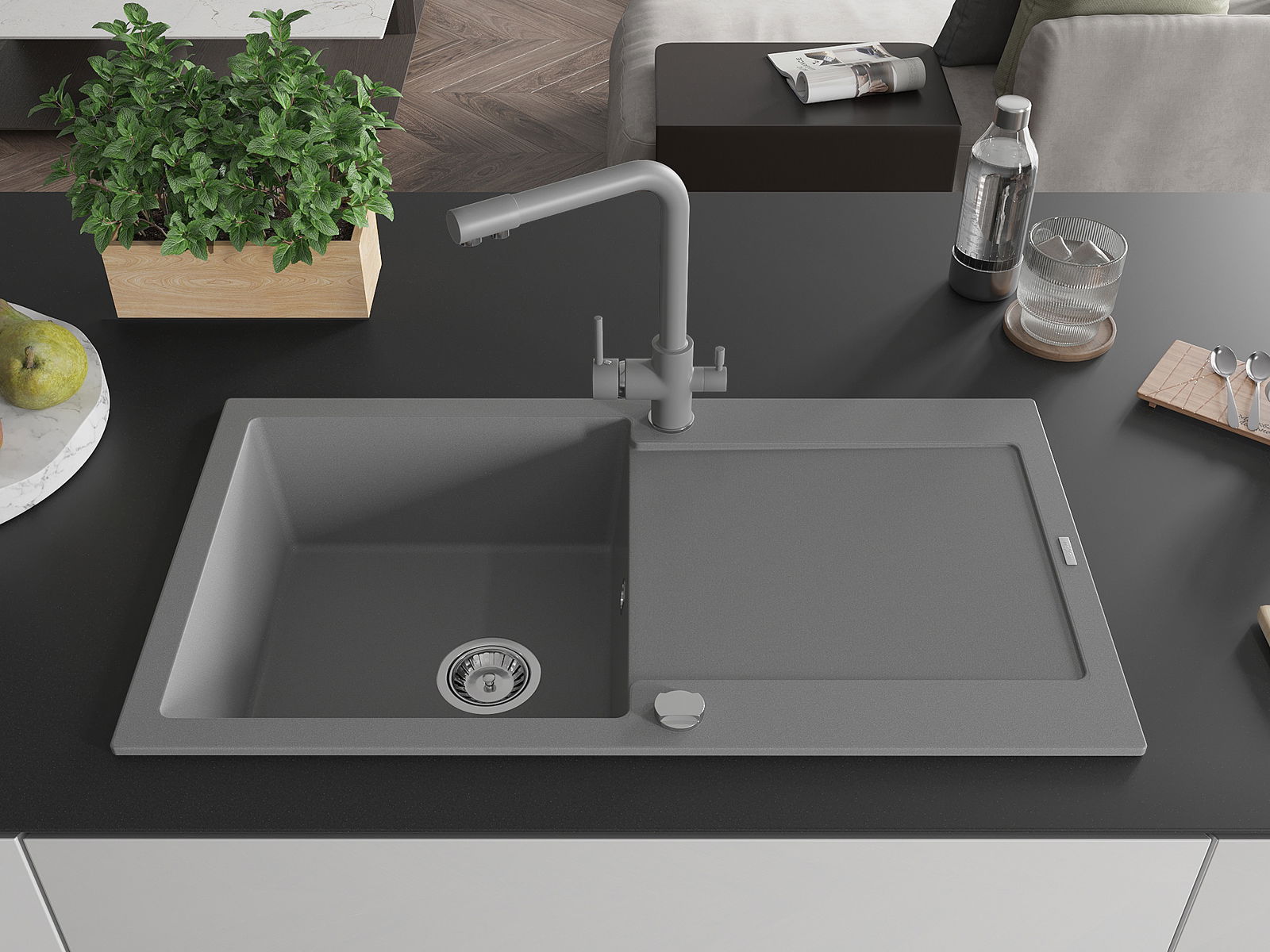 Mexen Leo granitový dřez 1-komorový s odkapávačem a kuchyňskou baterií Duero, šedý - 6501-71-671600-71
