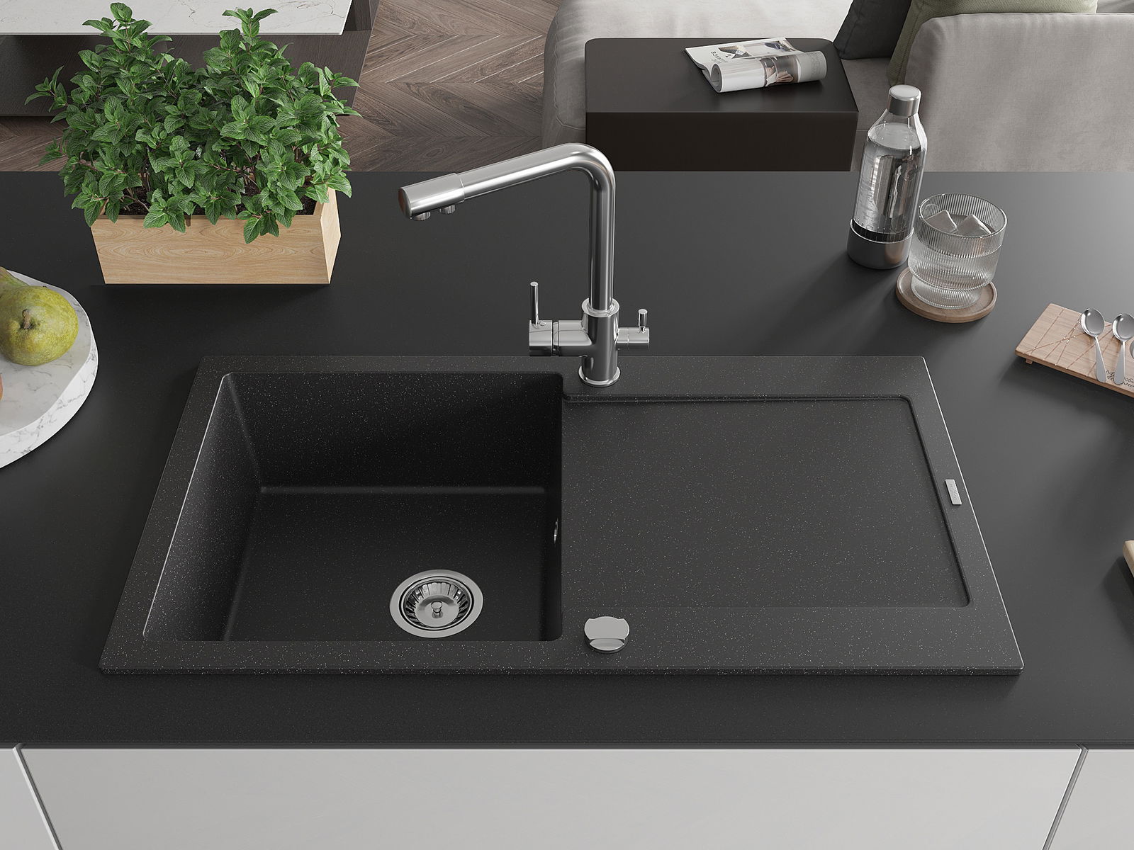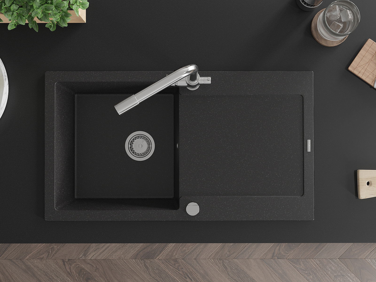 Dřez byl vyroben z vysoce kvalitního granitu. Představuje elegantní a především praktický doplněk každé kuchyně, bez ohledu na její styl. Vysoká kvalita a trvanlivost granitu zajišťují dlouholeté používání.