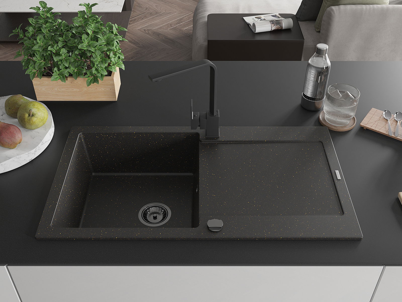Dřez byl vyroben z vysoce kvalitního granitu. Představuje elegantní a především praktický doplněk každé kuchyně, bez ohledu na její styl. Vysoká kvalita a trvanlivost granitu zajišťují dlouholeté používání.
