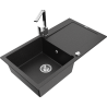 Mexen Leo granitový dřez 1-komorový s odkapávačem a kuchyňskou baterií Rita, černý skvrnitý - 6501-76-670300-00