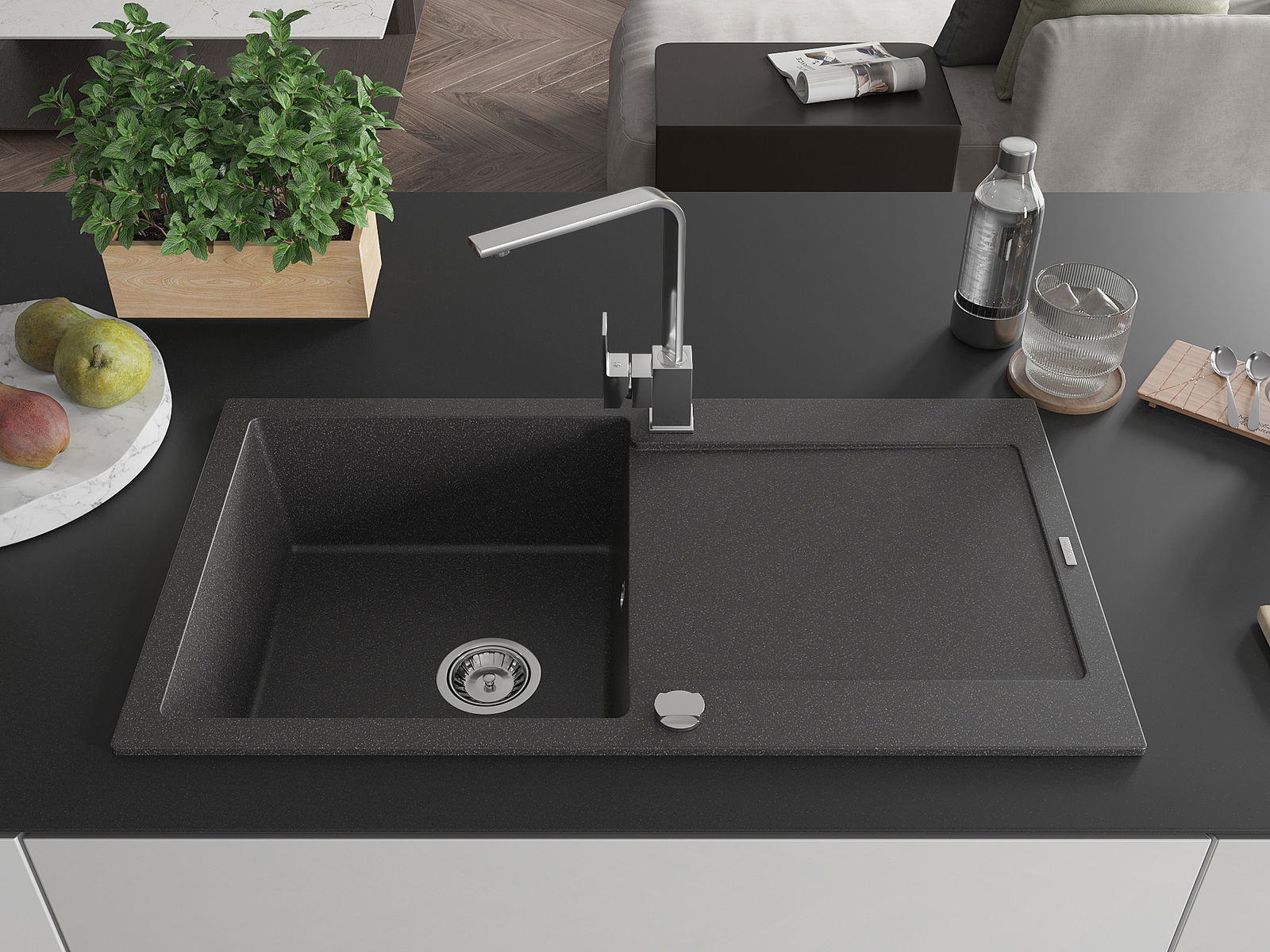 Dřez byl vyroben z vysoce kvalitního granitu. Představuje elegantní a především praktický doplněk každé kuchyně, bez ohledu na její styl. Vysoká kvalita a trvanlivost granitu zajišťují dlouholeté používání.