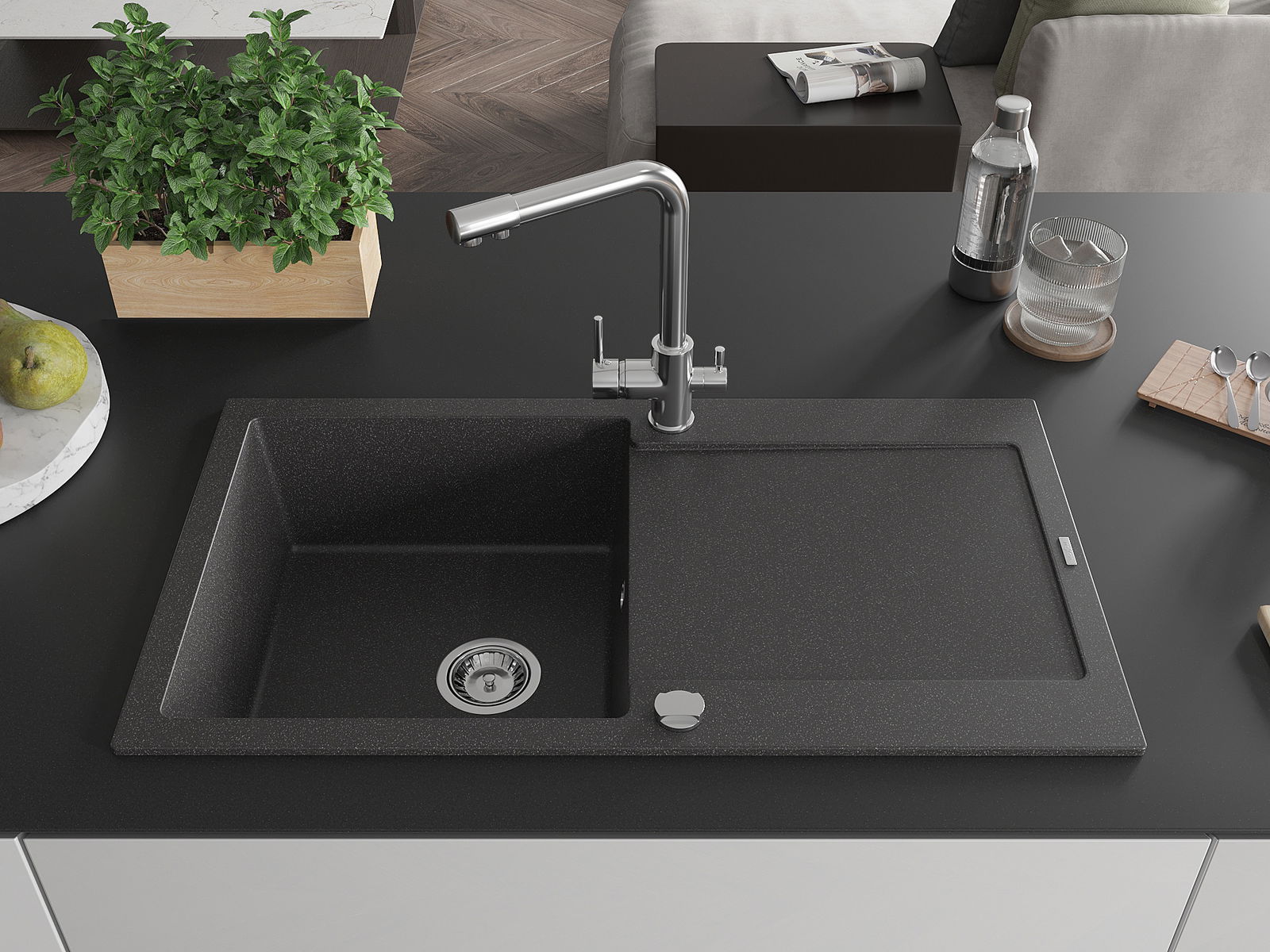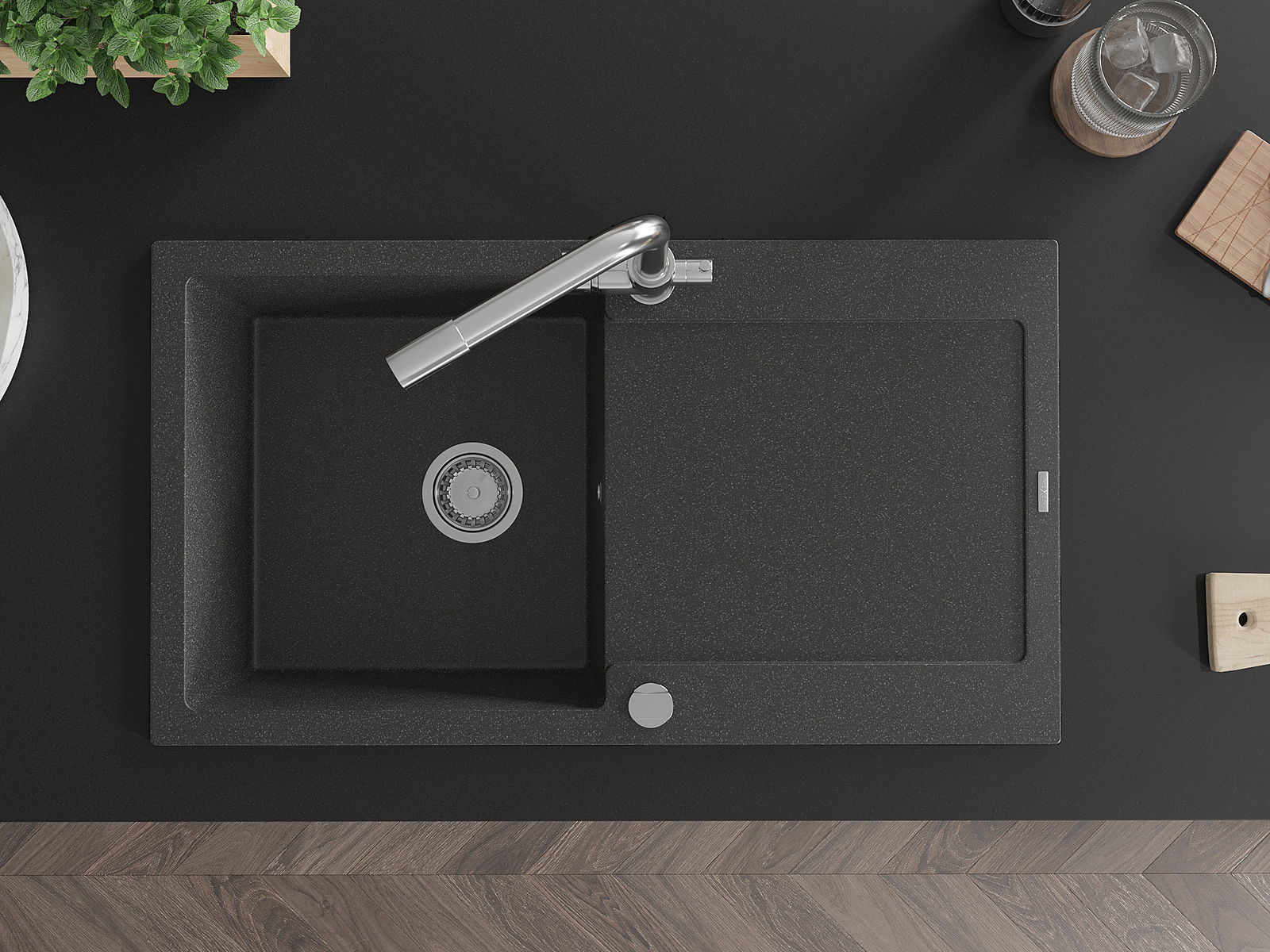 Dřez byl vyroben z vysoce kvalitního granitu. Představuje elegantní a především praktický doplněk každé kuchyně, bez ohledu na její styl. Vysoká kvalita a trvanlivost granitu zajišťují dlouholeté používání.