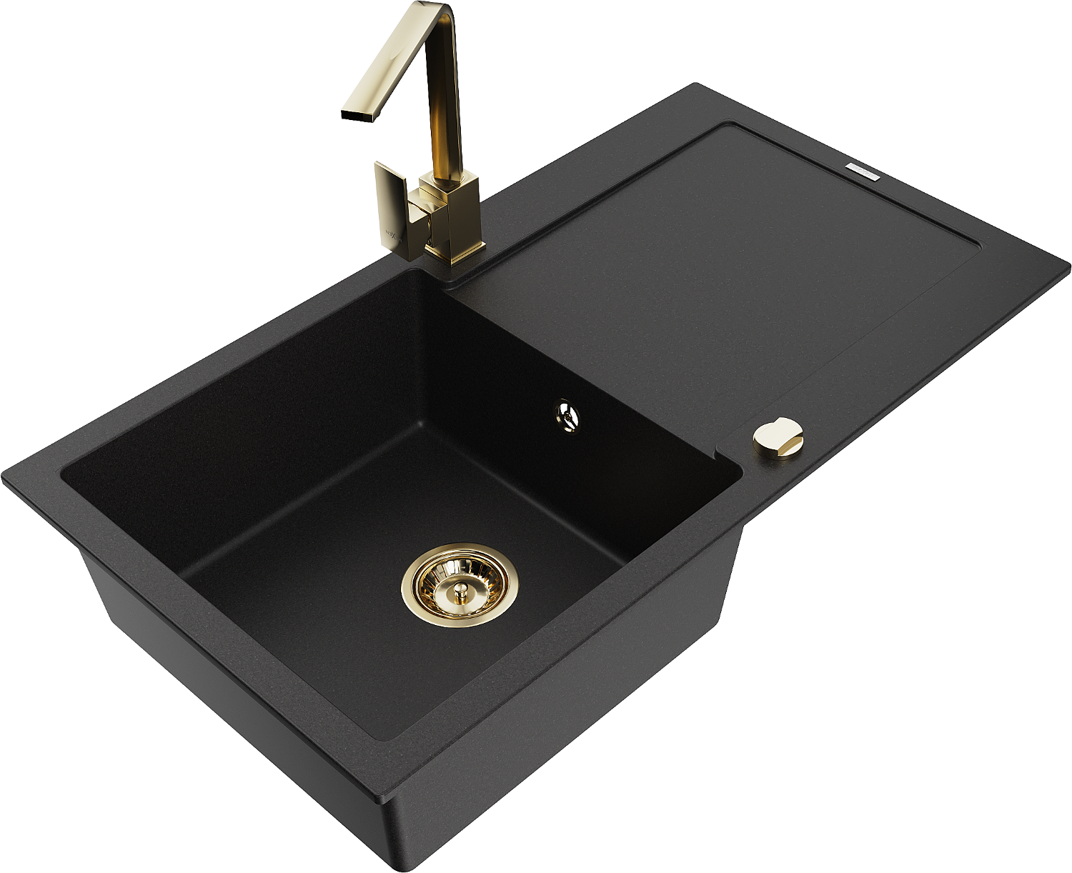 Mexen Leo granitový dřez 1-komorový s odkapávačem a kuchyňskou baterií Rita, černý - 6501-77-670300-50