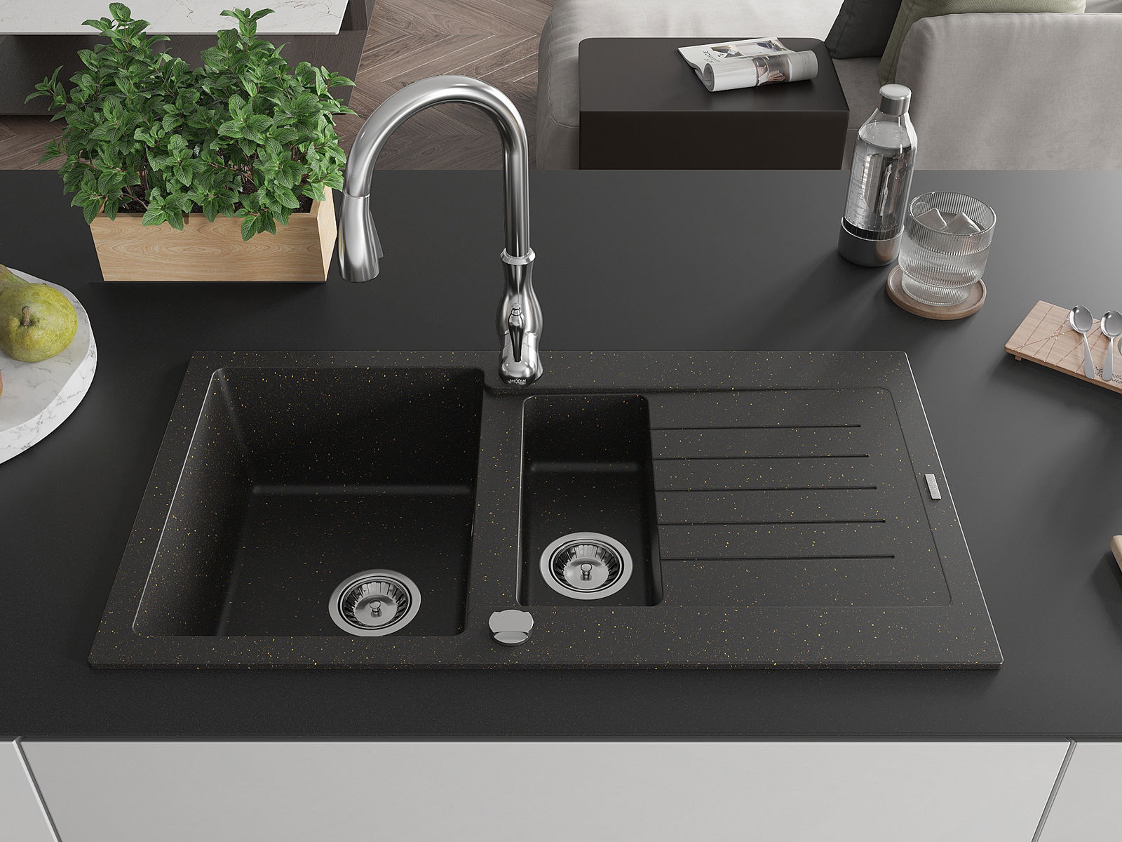 Dřez byl vyroben z vysoce kvalitního granitu. Představuje elegantní a především praktický doplněk každé kuchyně, bez ohledu na její styl. Vysoká kvalita a trvanlivost granitu zajišťují dlouholeté používání.