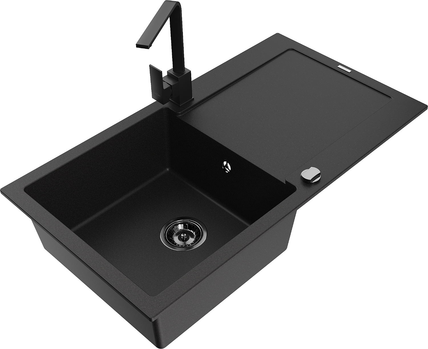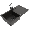 Mexen Leo granitový dřez 1-komorový s odkapávačem a kuchyňskou baterií Rita, černý - 6501-77-670300-70-B