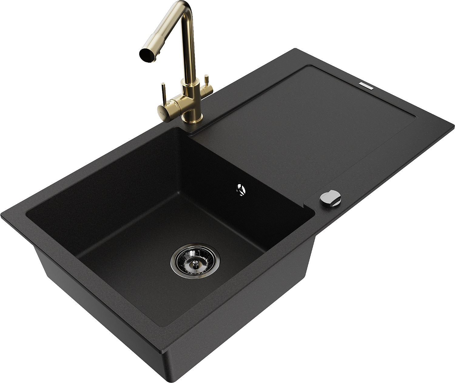 Mexen Leo granitový dřez 1-komorový s odkapávačem a kuchyňskou baterií Duero, černý - 6501-77-671600-50-B