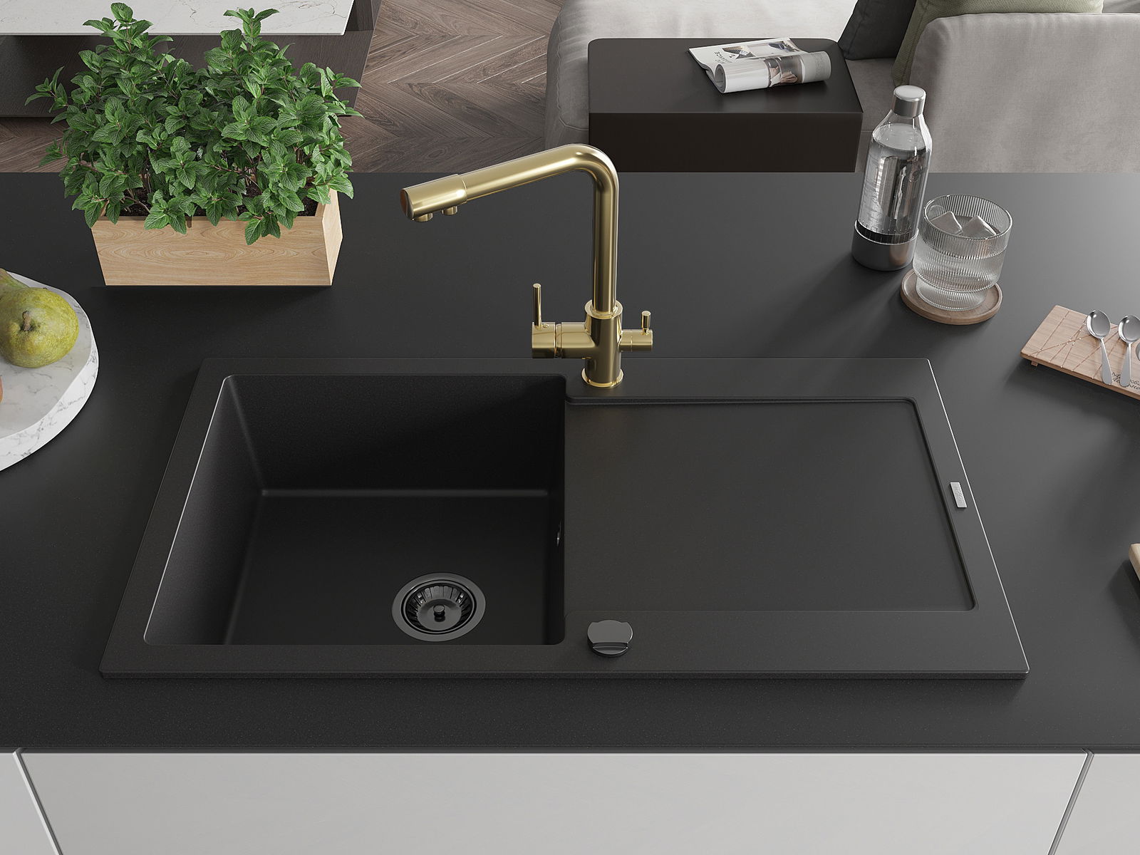 Dřez byl vyroben z vysoce kvalitního granitu. Představuje elegantní a především praktický doplněk každé kuchyně, bez ohledu na její styl. Vysoká kvalita a trvanlivost granitu zajišťují dlouholeté používání.