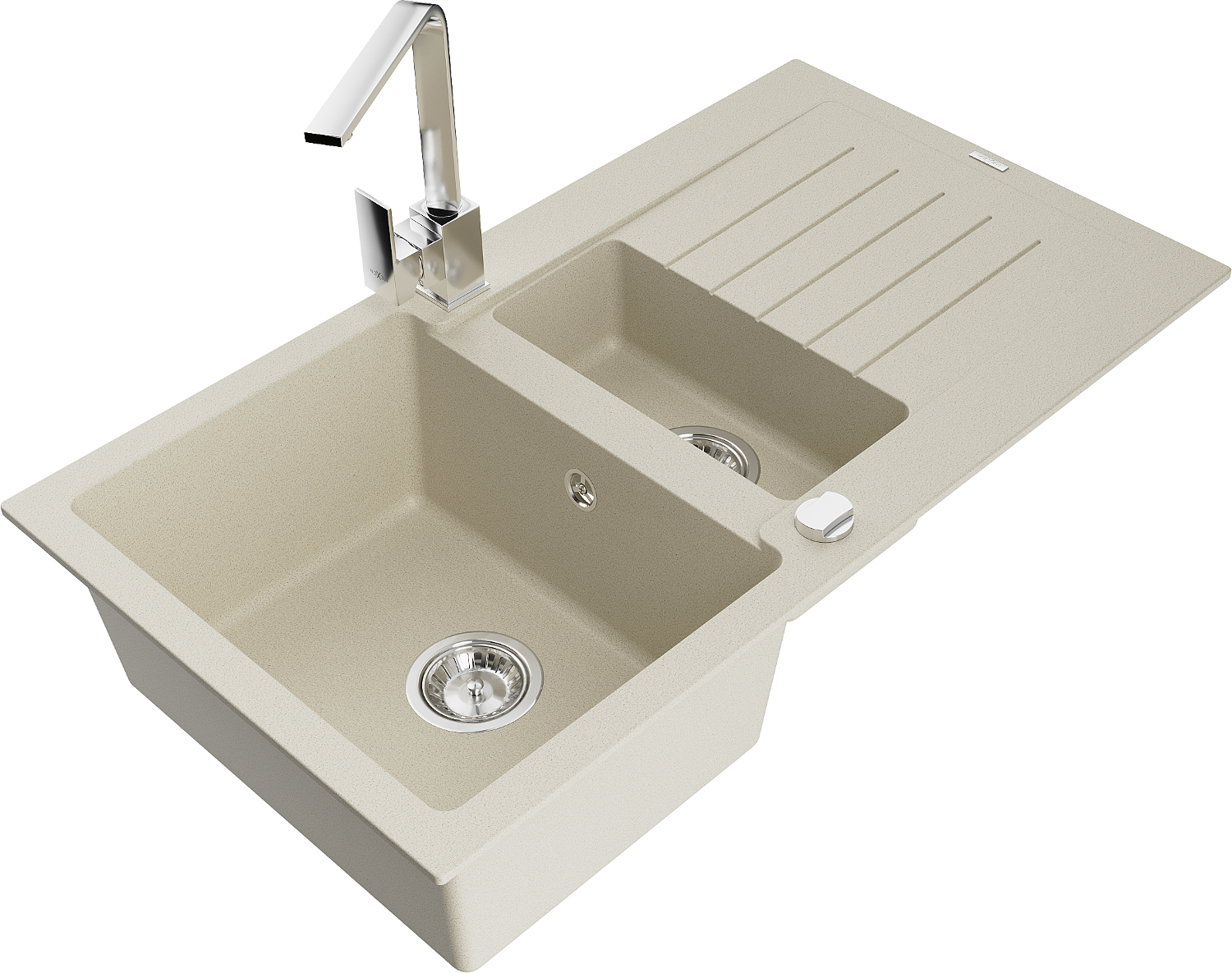 Mexen Matias granitový dřez 1,5-komorový s odkapávačem a kuchyňskou baterií Rita, béžový - 6502-69-670300-00