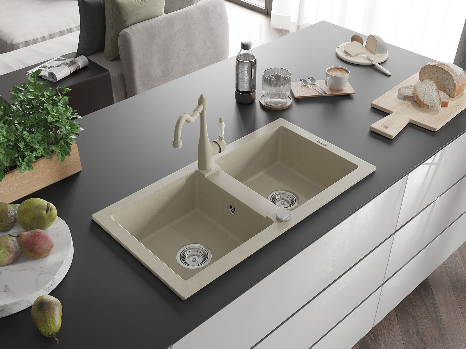 Dřez byl vyroben z vysoce kvalitního granitu. Představuje elegantní a především praktický doplněk každé kuchyně, bez ohledu na její styl. Vysoká kvalita a trvanlivost granitu zajišťují dlouholeté používání.