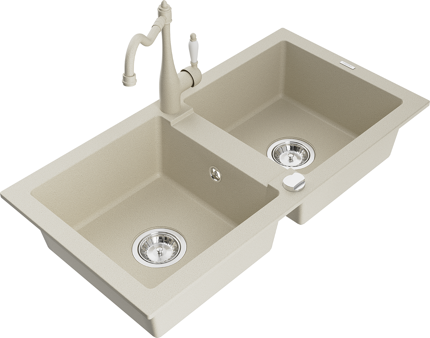 Mexen Mario Granitový Dřez 2-komorový s Kuchyňskou Baterii Carla, Béžový - 6504-69-670700-69