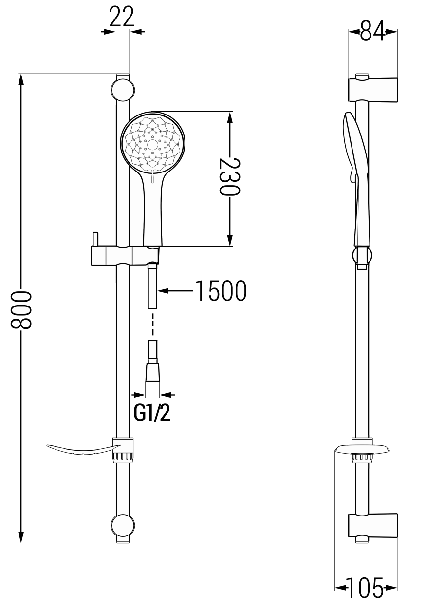 Přípojka se závitem 1/2" je běžně používaným standardním prvkem ve vnitřních vodovodních instalacích. Díky tomu je připojení a montáž dalších prvků sprchy mnohem snadnější a intuitivnější.
