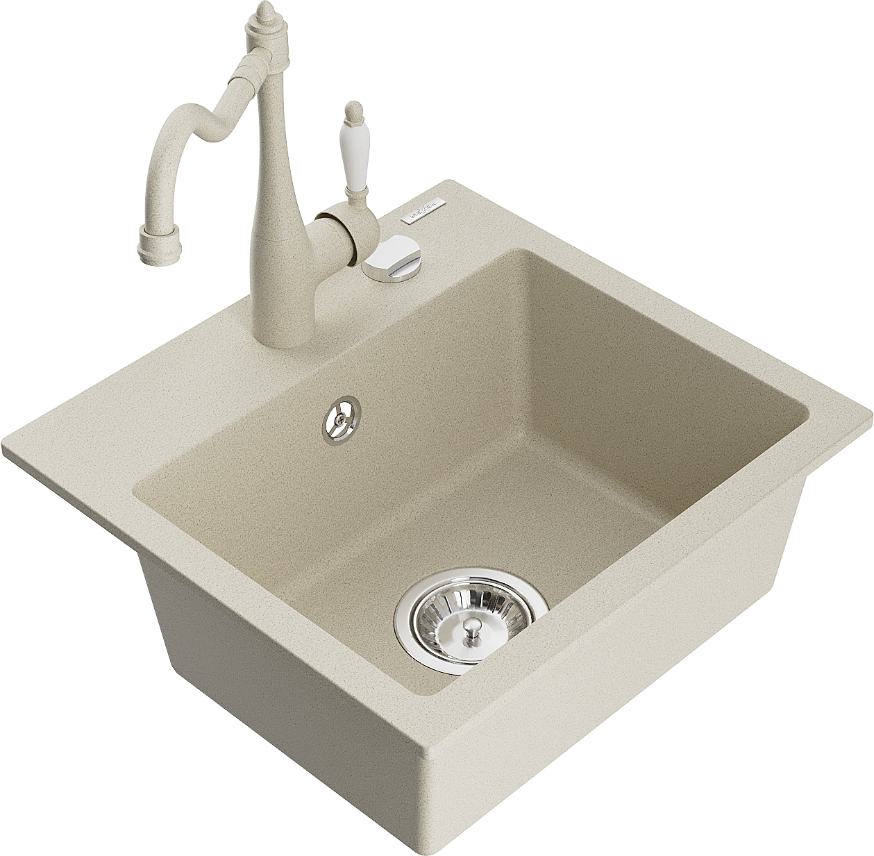 Mexen Milo granitový dřez s baterií Carla, béžový - 6505-69-670700-69