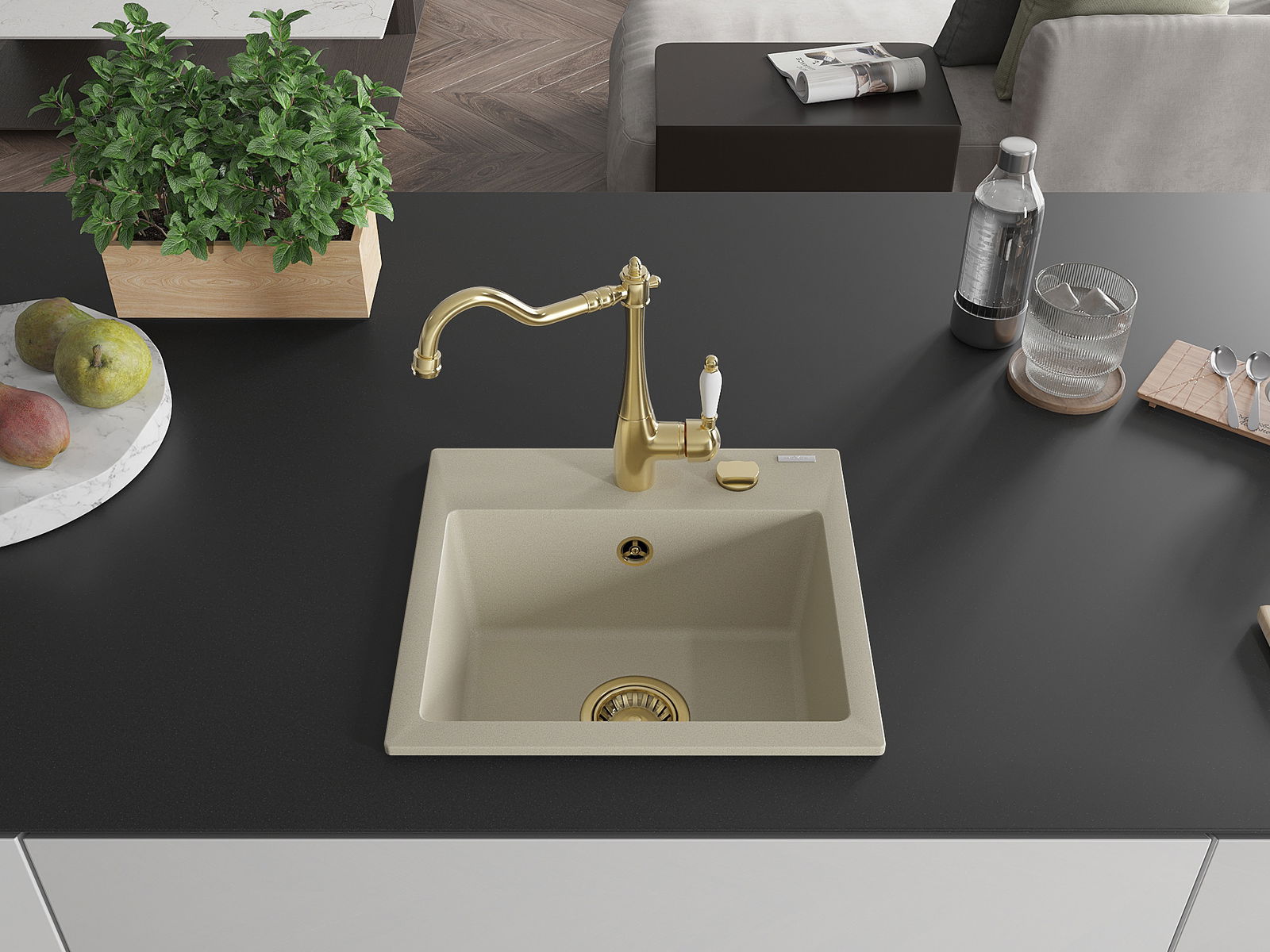 Dřez byl vyroben z vysoce kvalitního granitu. Představuje elegantní a především praktický doplněk každé kuchyně, bez ohledu na její styl. Vysoká kvalita a trvanlivost granitu zajišťují dlouholeté používání.