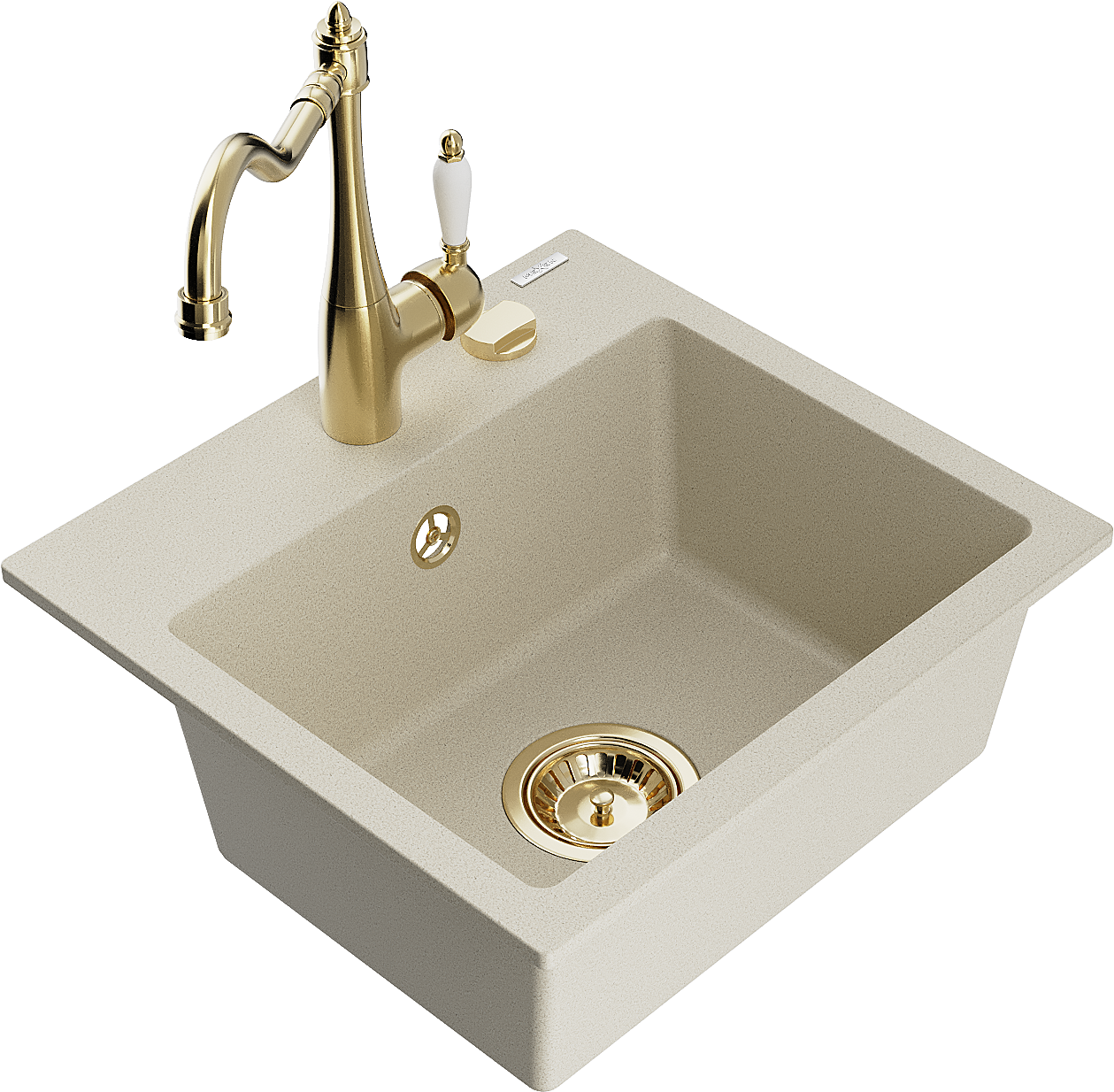 Mexen Milo granitový dřez 1-komorový s kuchyňskou baterií Carla, béžový - 6505-69-670700-50
