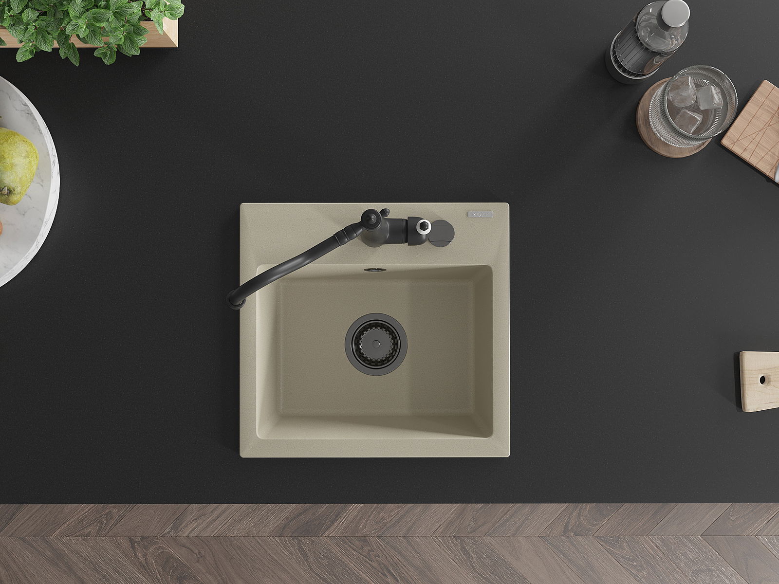 Povrch dřezu je odolný proti skvrnám a zabarvení, což usnadňuje jeho čištění a zachovává jeho barvu po dlouhou dobu používání. Estetický a praktický doplněk každé kuchyně.