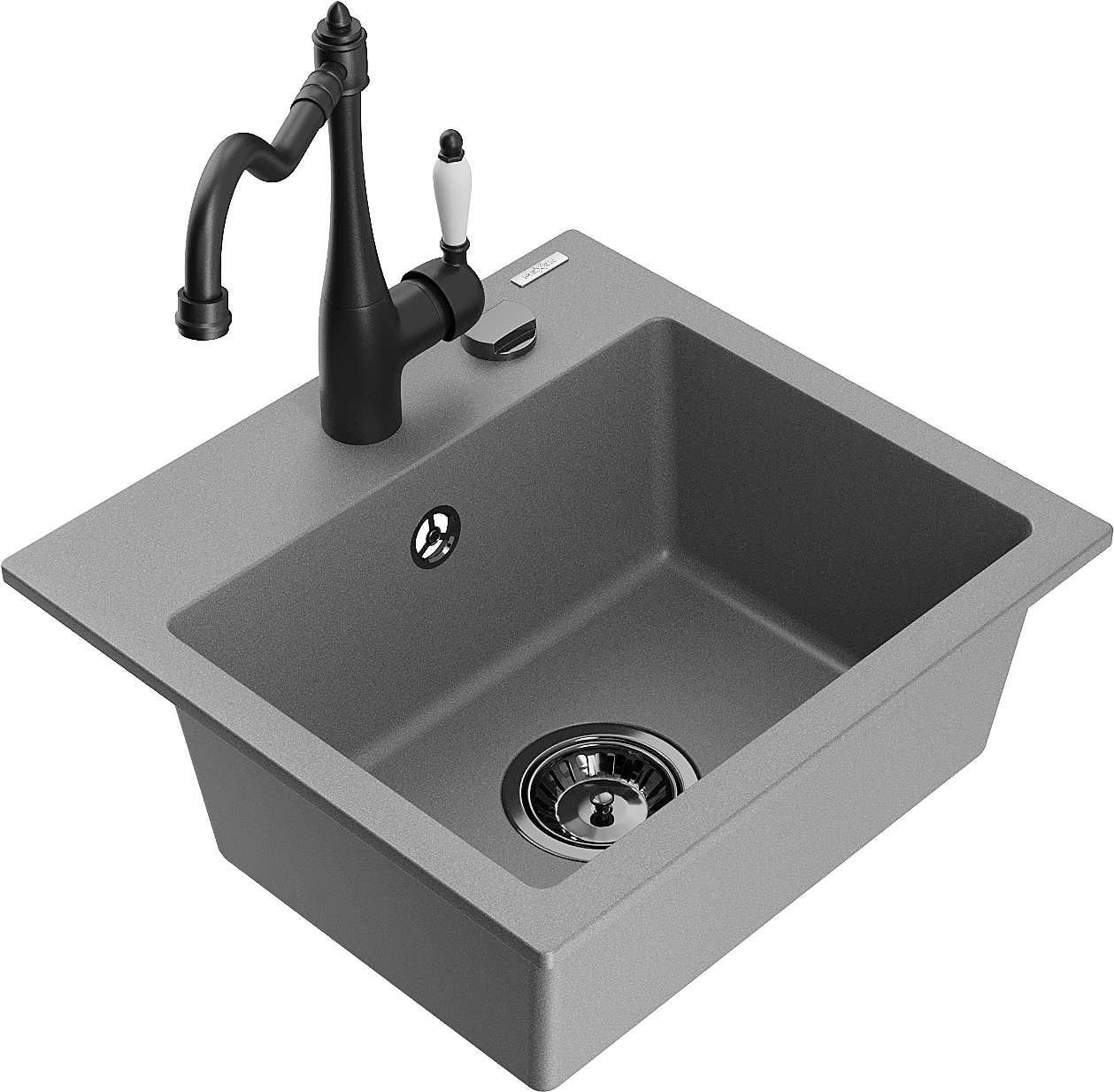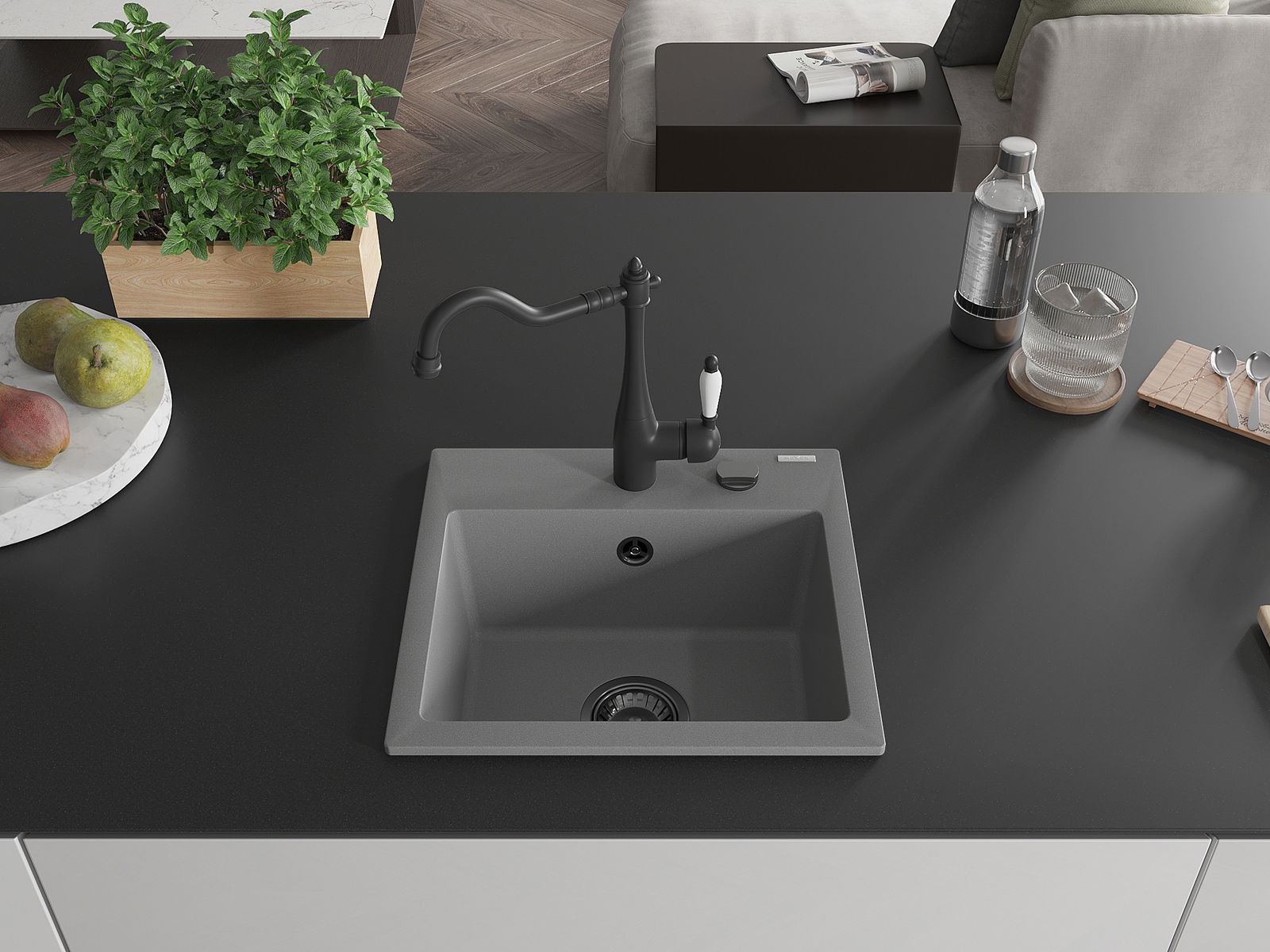 Mexen Milo granitový dřez 1-komorový s kuchyňskou baterií Carla, šedý - 6505-71-670700-70-B
