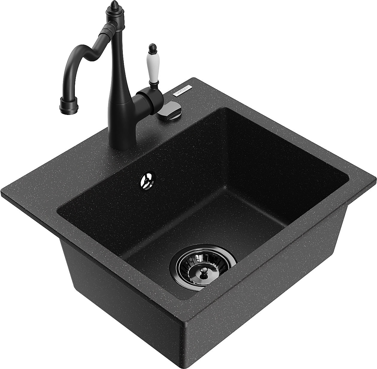Mexen Milo granitový dřez 1-komorový s kuchyňskou baterií Carla, černý/stříbrný metalik - 6505-73-670700-70-B