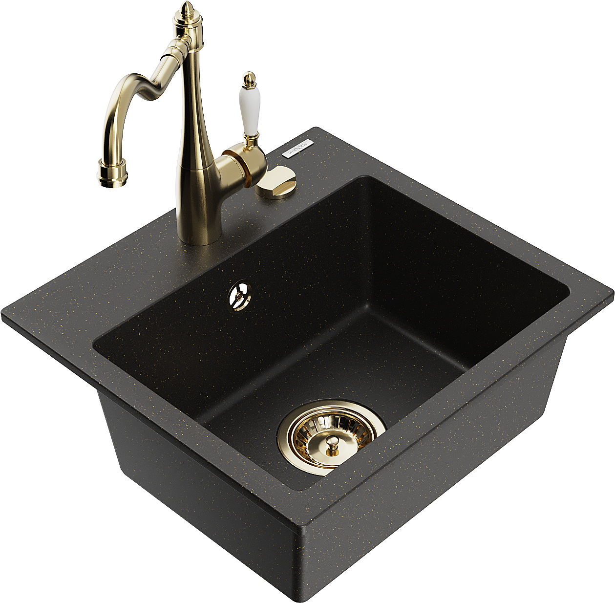 Mexen Milo granitový dřez 1-komorový s kuchyňskou baterií Carla, černý/zlatý metalik - 6505-75-670700-50