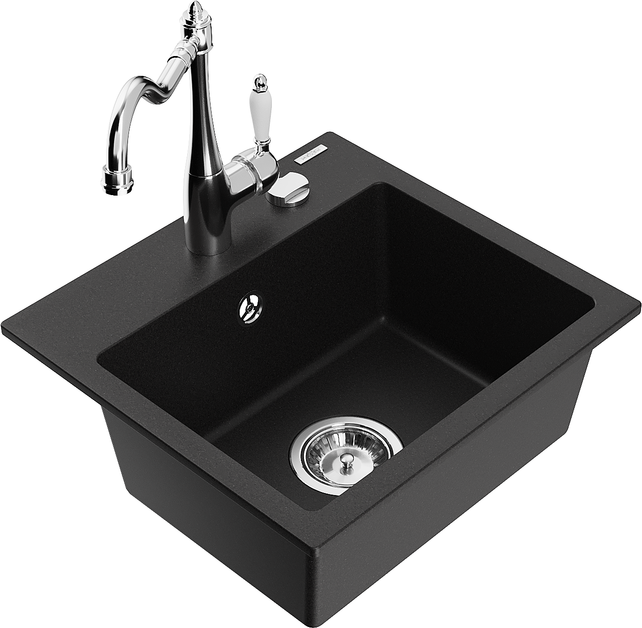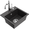 • Mexen Milo dřez granitový 1-komorový s kuchyňskou baterií Carla, černý - 6505-77-670700-00