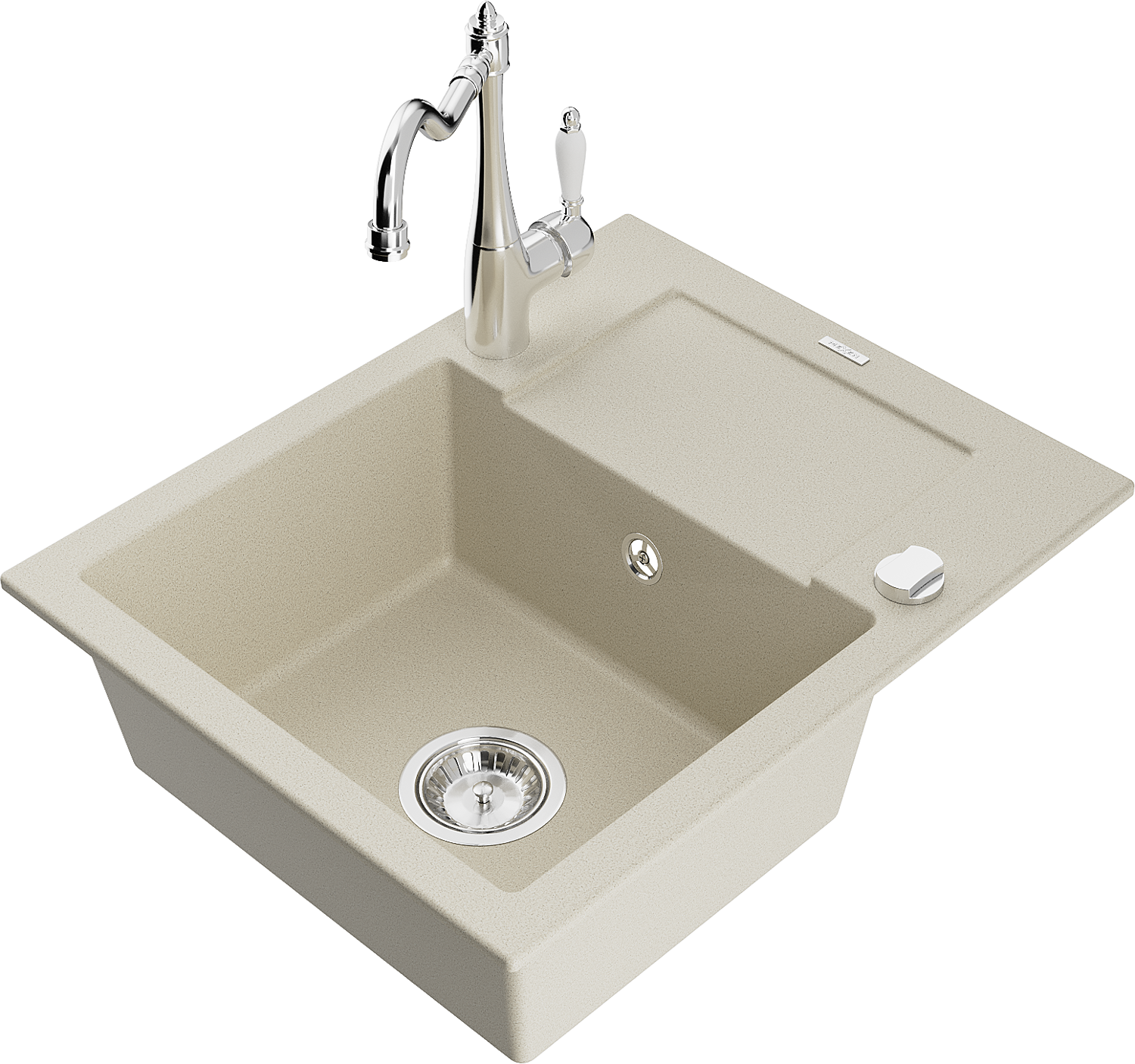 Mexen Enzo granitový dřez s 1 komorou a odkapávačem a kuchyňskou baterií Carla, béžový - 6506-69-670700-00
