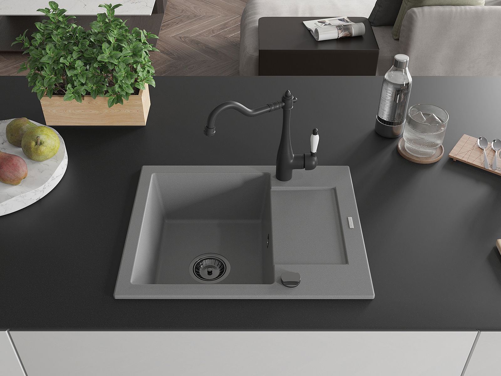 Dřez byl vyroben z vysoce kvalitního granitu. Představuje elegantní a především praktický doplněk každé kuchyně, bez ohledu na její styl. Vysoká kvalita a trvanlivost granitu zajišťují dlouholeté používání.