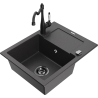 Mexen Enzo granitový kuchyňský dřez s 1 komorou s odkapávačem a kuchyňskou baterií Carla, šedý - 6506-71-670700-70-B