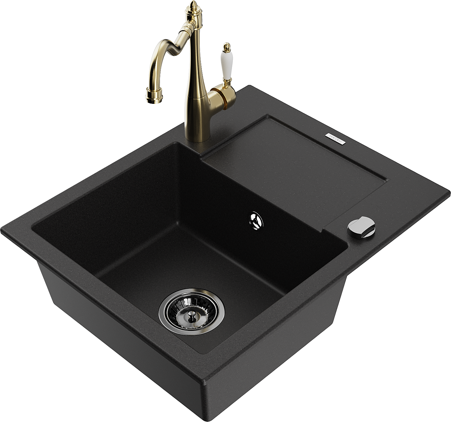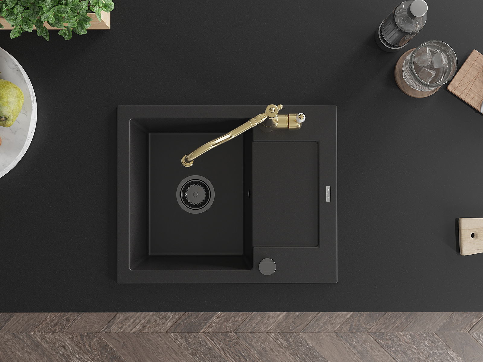 Mexen Enzo granitový dřez 1-komorový s odkapávačem a kuchyňskou baterií Carla, černý - 6506-77-670700-50-B