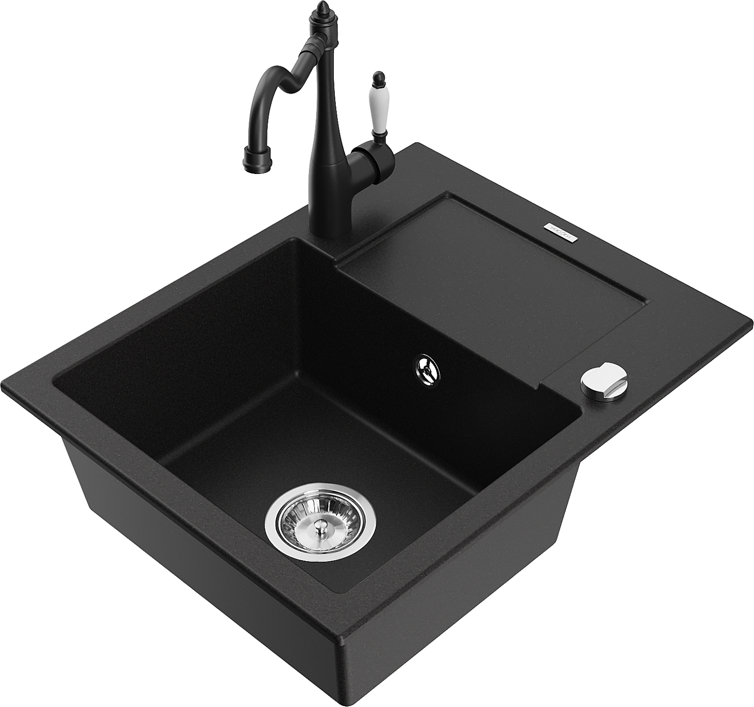 Mexen Enzo granitový dřez 1-komorový s odkapávačem a kuchyňskou baterií Carla, černý - 6506-77-670700-70