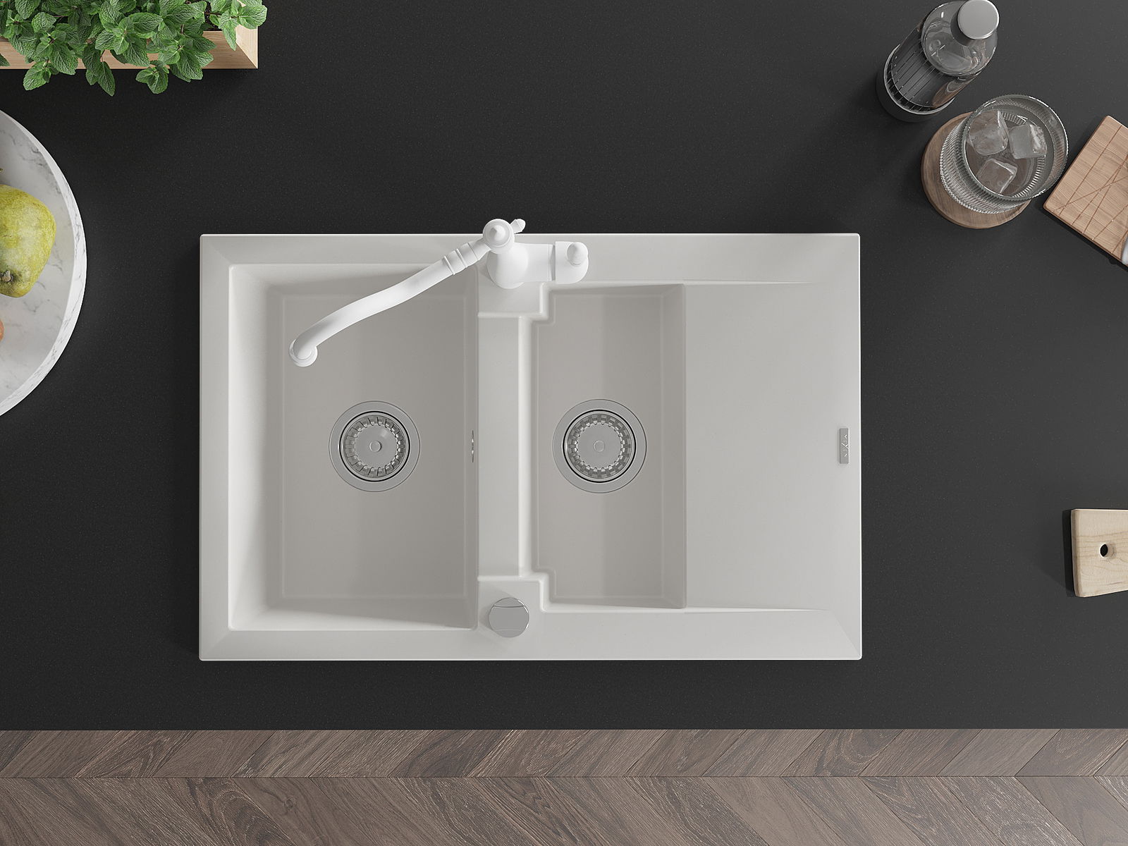 Povrch dřezu je velmi dobře vytvrzený, vyznačuje se výjimečnou odolností proti mechanickému poškození a poškrábání. Trvanlivý materiál umožňuje užívat si dobrý vzhled dřezu po mnoho let používání.