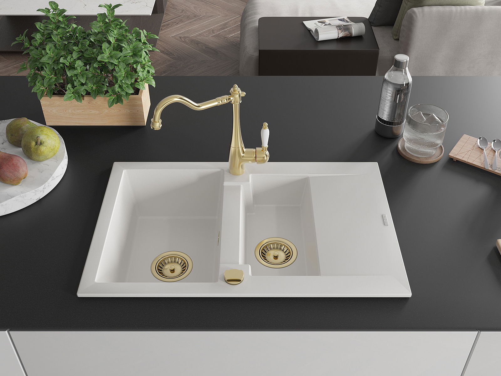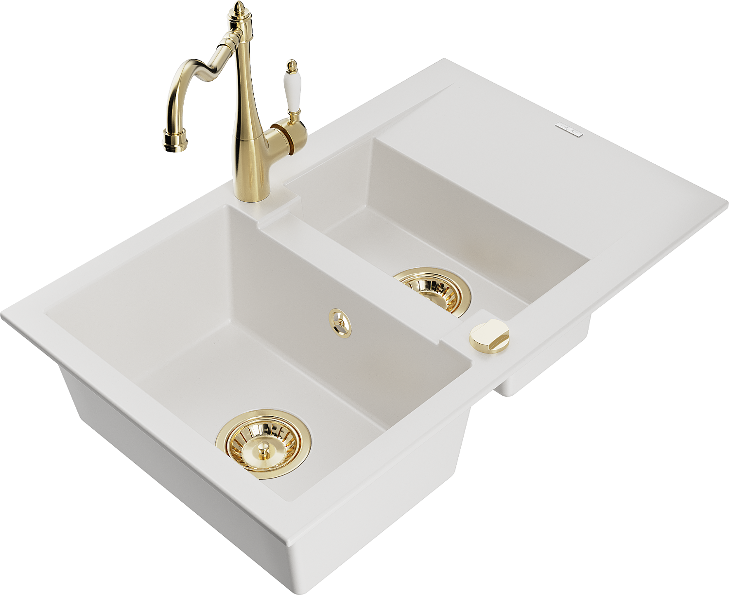 • Mexen Gaspar granitový dřez 1,5komorový s odkapávačem a kuchyňskou baterií Carla, bílý - 6507-20-670700-50