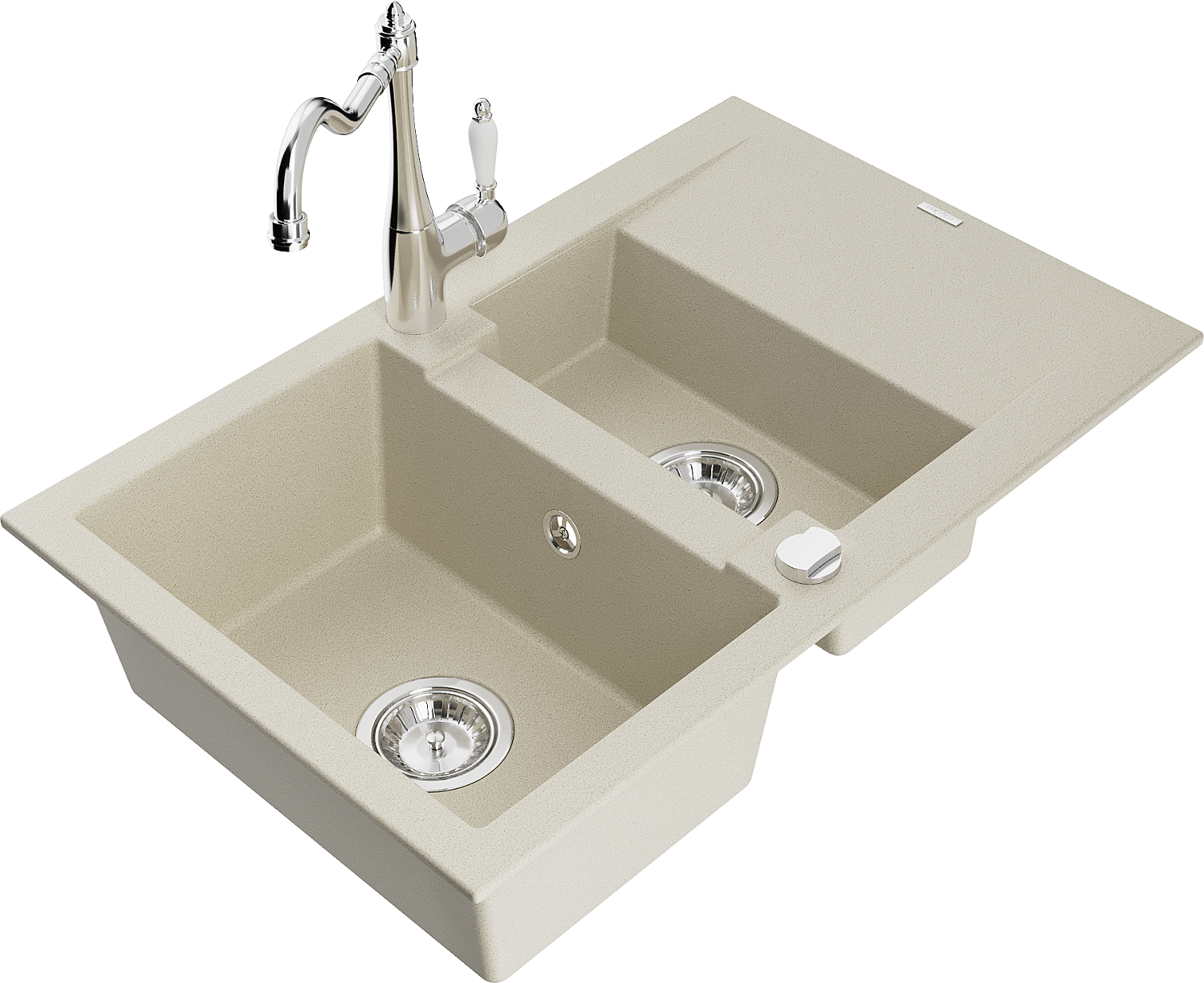 • Mexen Gaspar granitový dřez 1,5-komorový s odkapávačem a kuchyňskou baterií Carla, béžový - 6507-69-670700-00