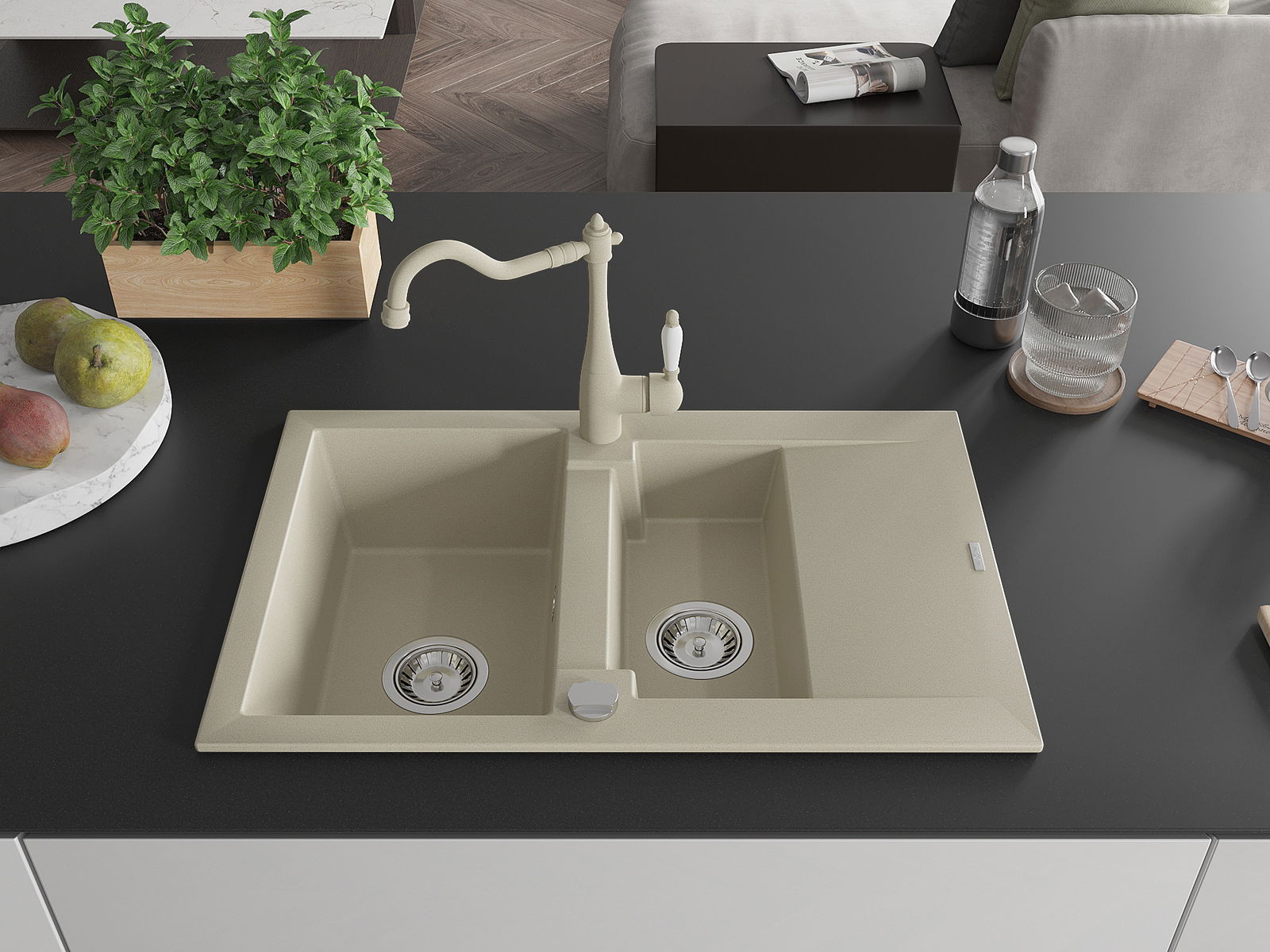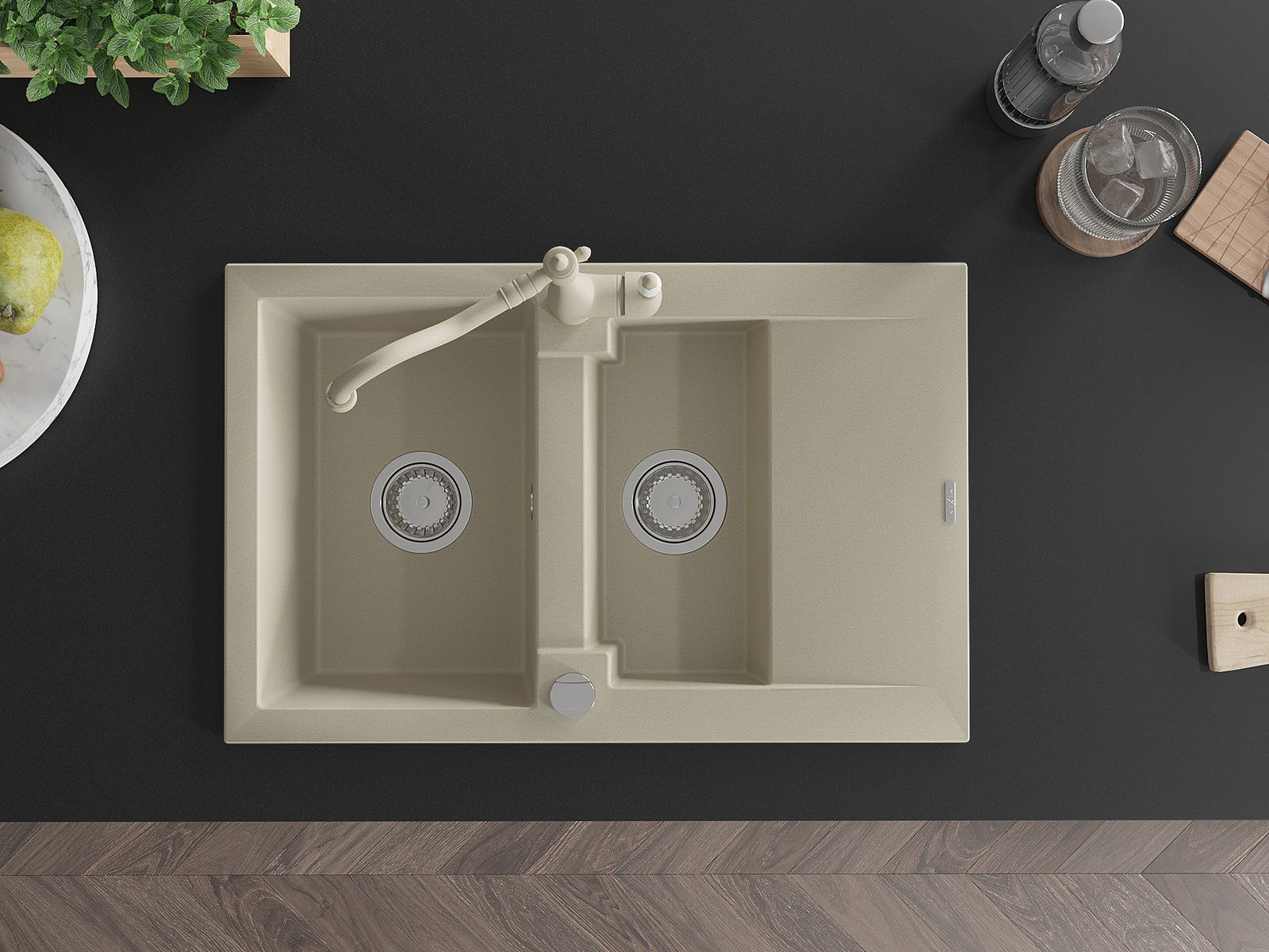 Dřez byl vyroben z vysoce kvalitního granitu. Představuje elegantní a především praktický doplněk každé kuchyně, bez ohledu na její styl. Vysoká kvalita a trvanlivost granitu zajišťují dlouholeté používání.