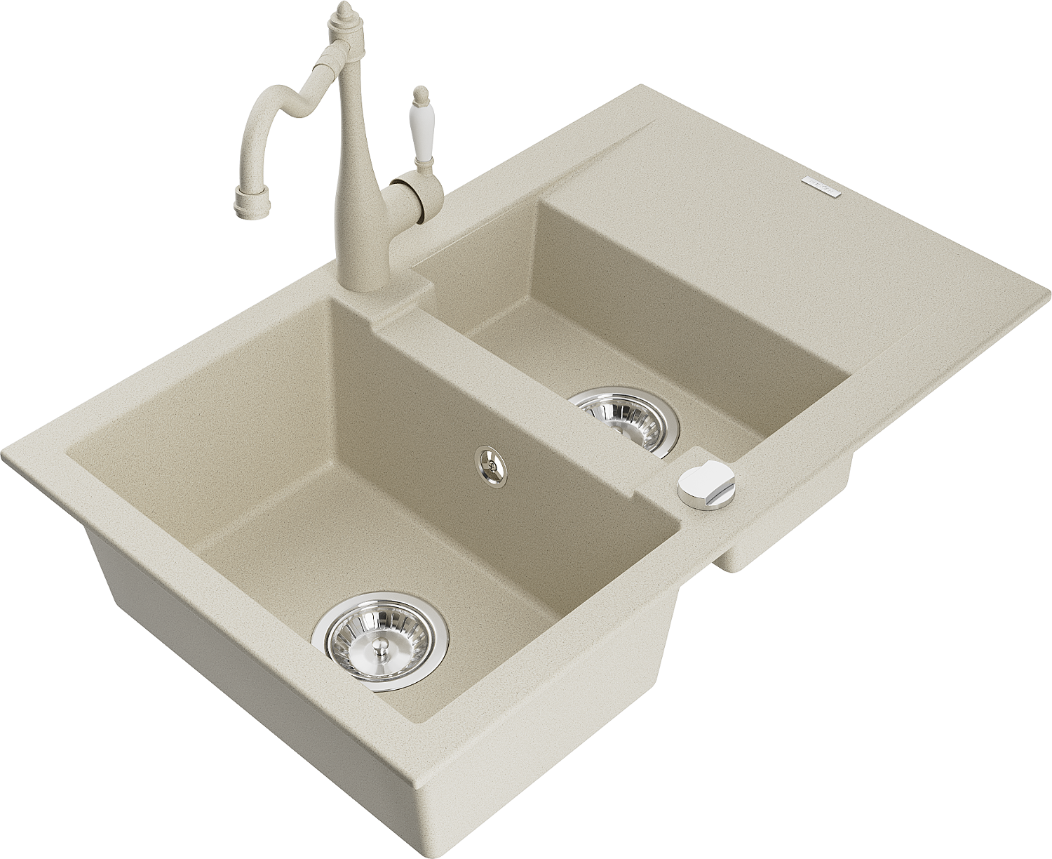 Mexen Gaspar granitový dřez 1,5-komorový s odkapávačem a kuchyňská baterie Carla, béžový - 6507-69-670700-69