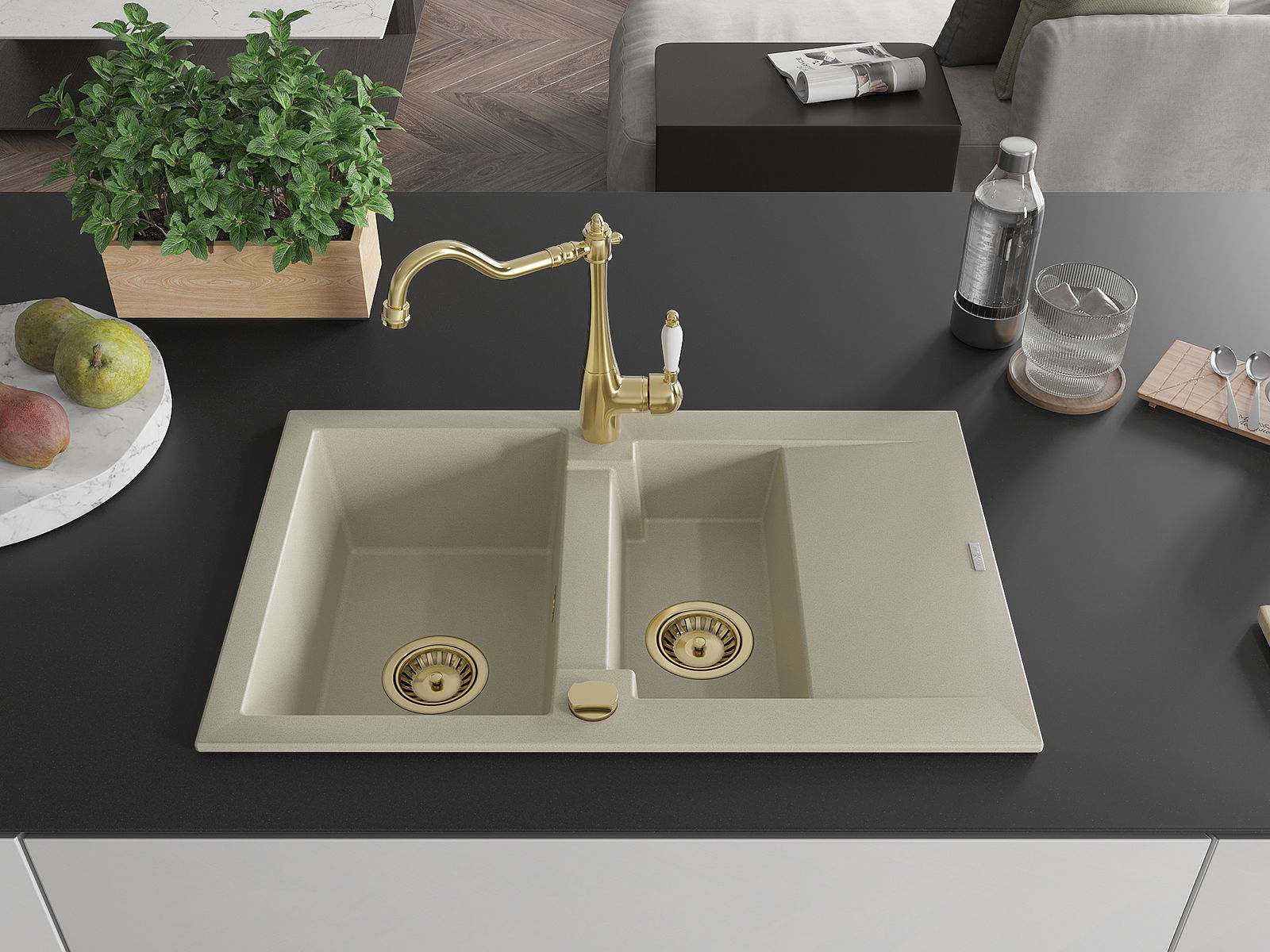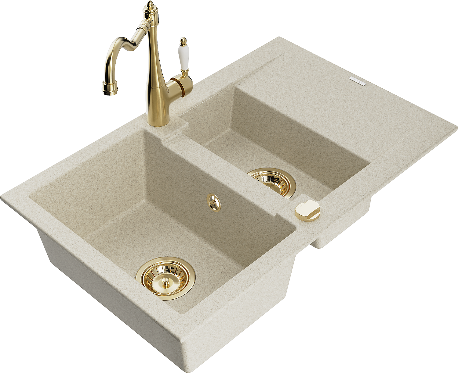 Mexen Gaspar granitový dřez 1,5 komory s odkapávačem a kuchyňskou baterií Carla, béžový - 6507-69-670700-50